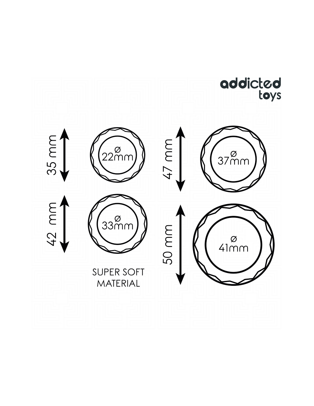 El set incluye cuatro anillos de diferentes tamaños —22 mm, 33 mm, 37 mm y 41 mm— para adaptarse a las distintas necesidades y preferencias de cada usuario. Gracias a su diseño ergonómico y texturizado, cada anillo proporciona un ajuste firme y seguro, intensificando la estimulación tanto para quien los usa como para su pareja.