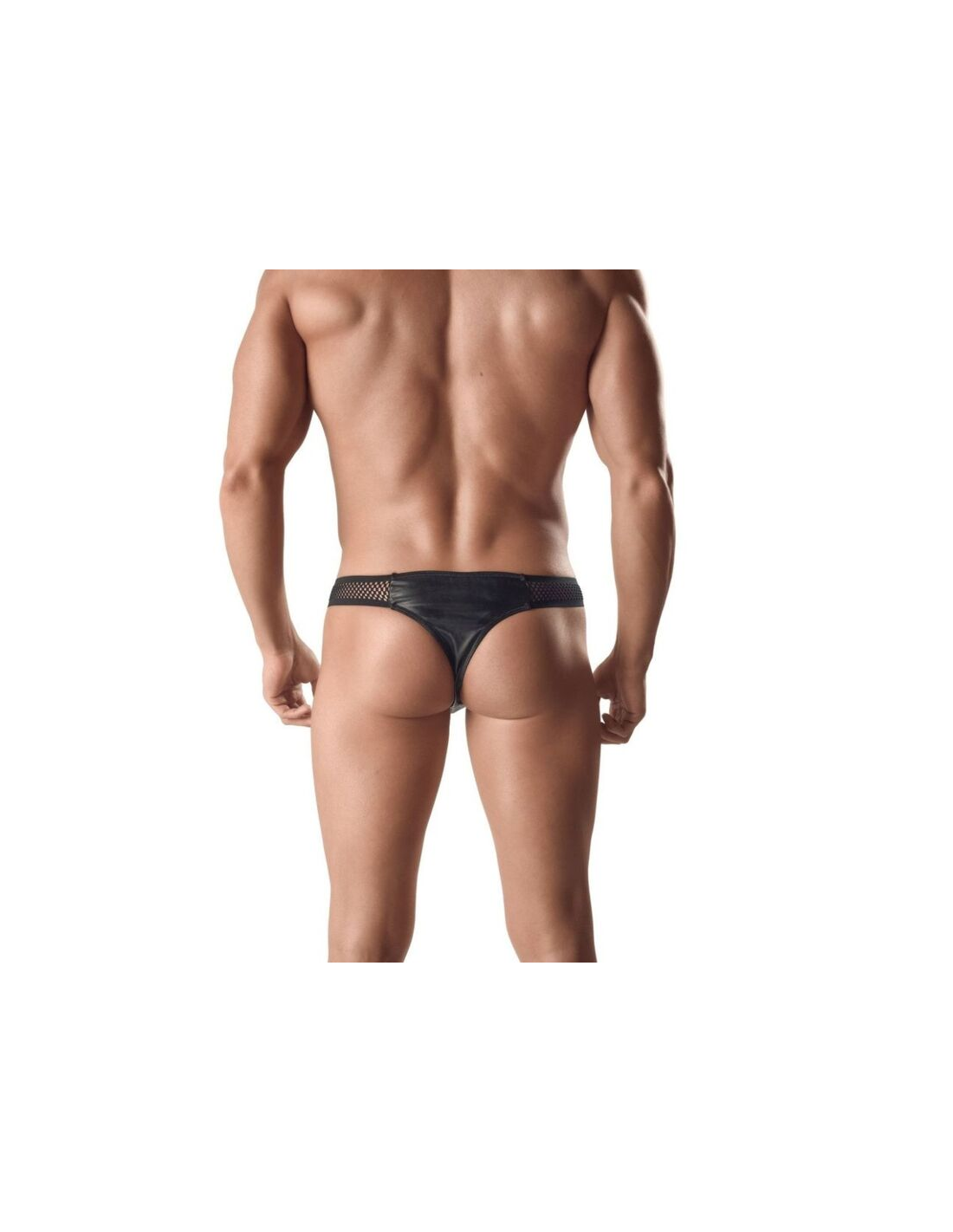Tanga de cuero y red, color negro.