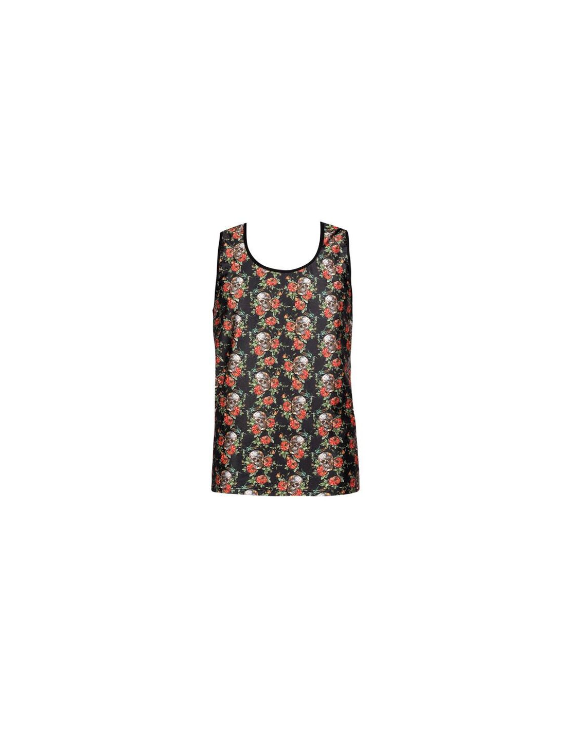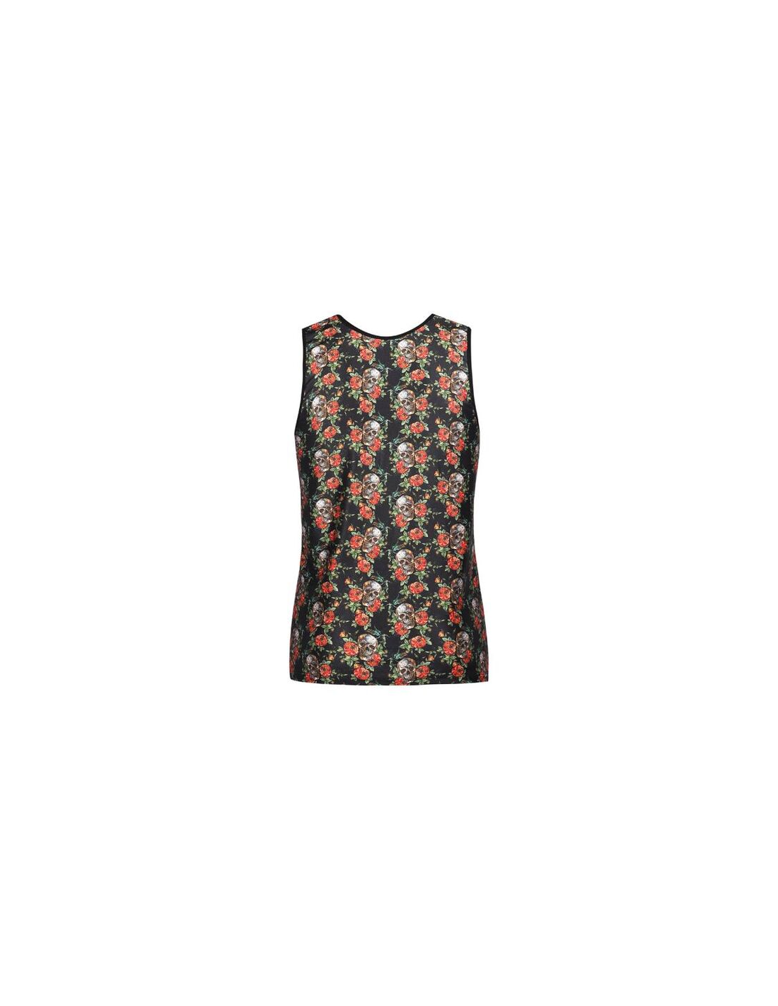 Modal suave de color claro con estampado de rosas y calaveras