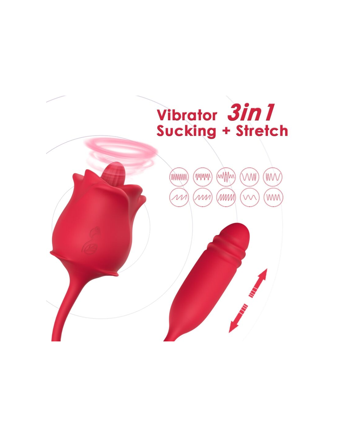 - Forma de rosa con un huevo vibrador como cola, que añade un elemento visual atractivo a su diseño.