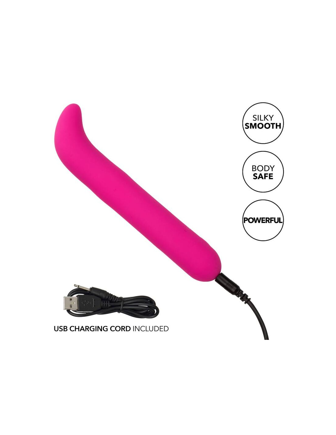 El Bliss G Vibe presenta un diseño curvado, ideal para la estimulación del **punto G**, lo que lo convierte en un elemento esencial para quienes desean explorar nuevas sensaciones. La punta suave del dispositivo está hecha de **silicona líquida 100%**, un material que no solo es duradero, sino que también proporciona una **sensación aterciopelada** en la piel. Esta textura suave y sedosa permite que el juguete se deslice con facilidad, maximizando el placer en cada uso.