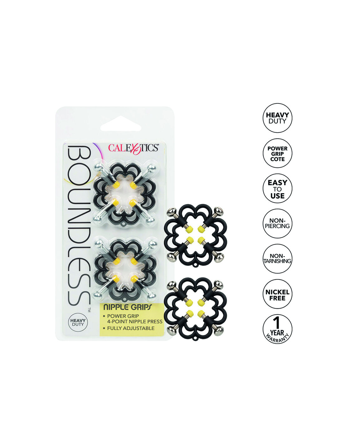CALEXOTICSSi estás buscando una manera de incrementar tu placer y explorar nuevas sensaciones, las pinzas para pezones Boundless de CalExotics son la opción ideal. Estas abrazaderas han sido diseñadas para quienes desean experimentar con niveles de sensibilidad y estimulación a través del uso de juguetes eróticos. Con un diseño innovador y ajustable, son perfectas tanto para principiantes como para quienes tienen más experiencia en la exploración del placer.