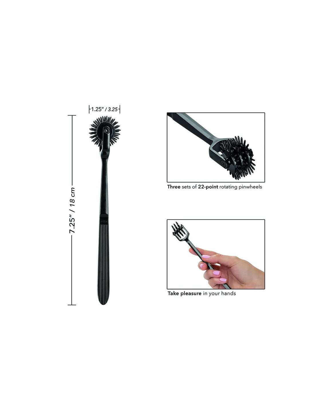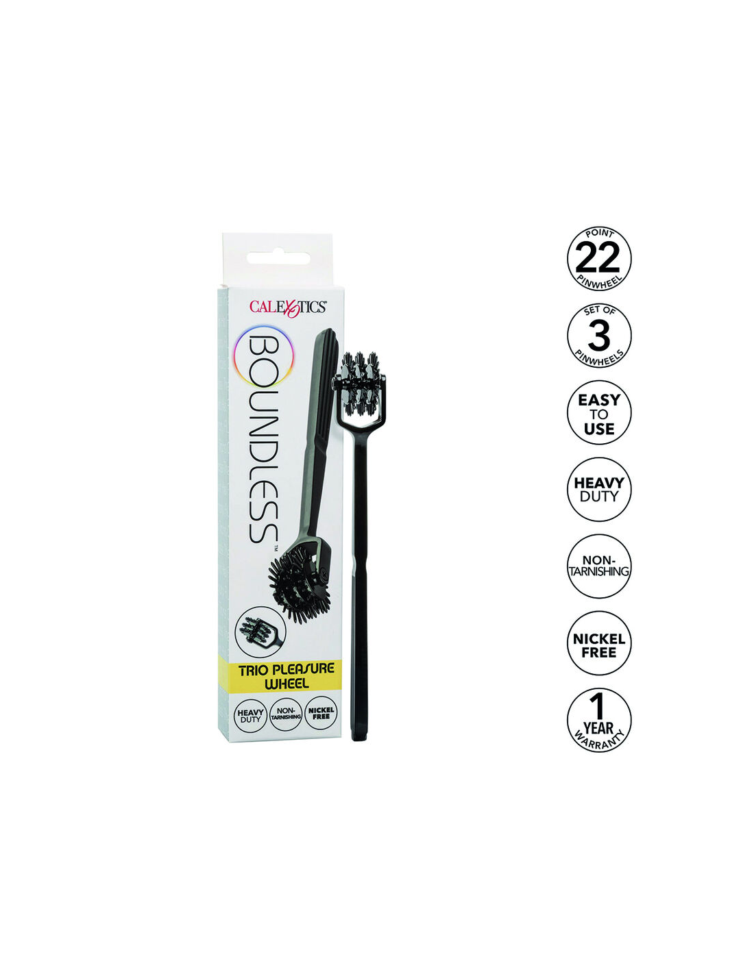 CALEXOTICSDisfrute de un placer escalofriante sin fin con la atrevida Boundless Trio Pleasure Wheel. La rueda de placer está hecha para emocionar con tres molinillos giratorios de 22 puntos, herrajes de alta resistencia y material que no se empaña. El material resistente y que no se deslustra está hecho para durar un tiempo de juego interminable. Con cada giro por tu piel de deseo, esta rueda apasionada emocionará, emocionará y elevará cada momento íntimo.