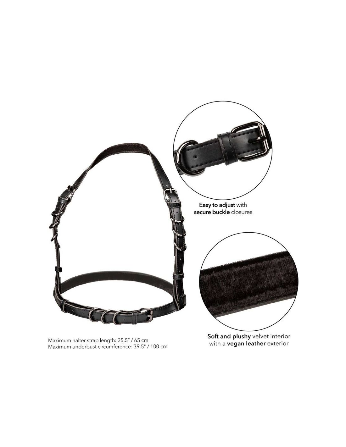 CALEXOTICSExplora con el Arnés de Hebilla Halter de la Colección Euphoria: un accesorio elegante, cómodo y funcional que cautiva con un diseño estilo halter. Acentuando las curvas y llamando la atención, es perfecto para momentos íntimos o atuendos audaces de festival. El cierre seguro con hebilla garantiza un ajuste fácil para un ajuste a medida, adaptándose a tu ajuste preferido. Duradero y contemporáneo, resiste el juego intenso. Disfruta del interior de terciopelo mullido y eleva tu atractivo con el exterior de cuero vegano. La construcción robusta, los acentos metálicos que no se empañan y el tamaño ajustable lo hacen confiable y visualmente atractivo. Experimenta la combinación perfecta de estilo y sensualidad con este versátil y cautivador arnés.