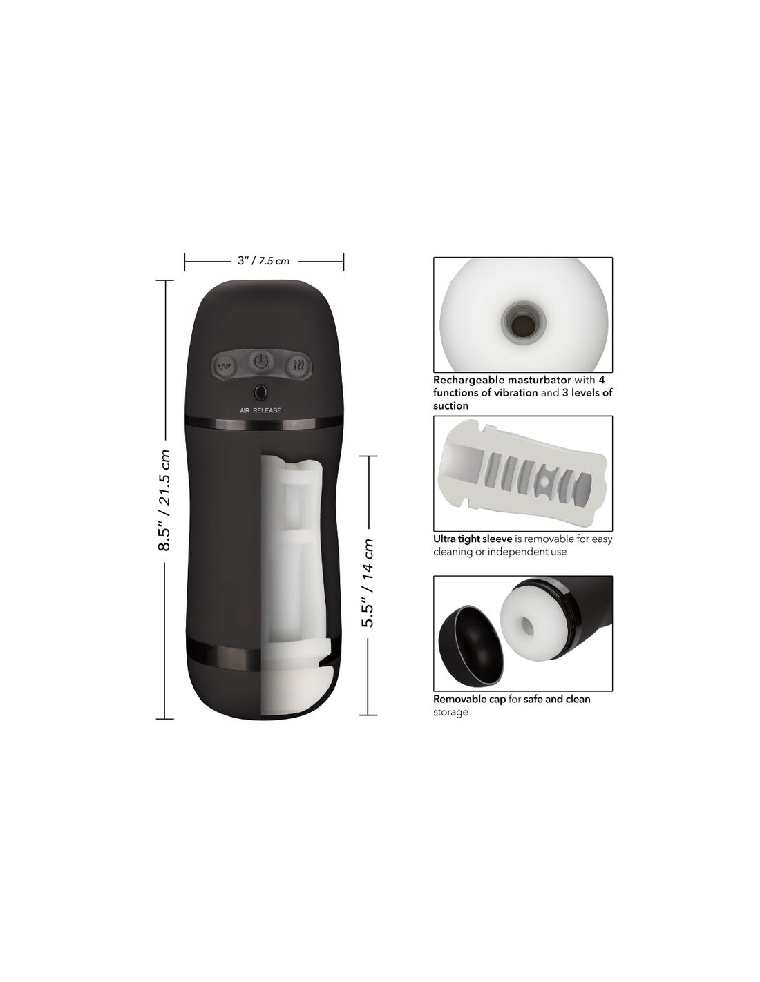 Además, el masturbador incluye 4 funciones independientes de vibración, que incluyen modalidades de intensidad, pulsación y escalada, garantizando que no habrá dos experiencias iguales. Con estos niveles variados, cada uso se convierte en una exploración sensorial única, lo que aumenta el placer y la excitación.