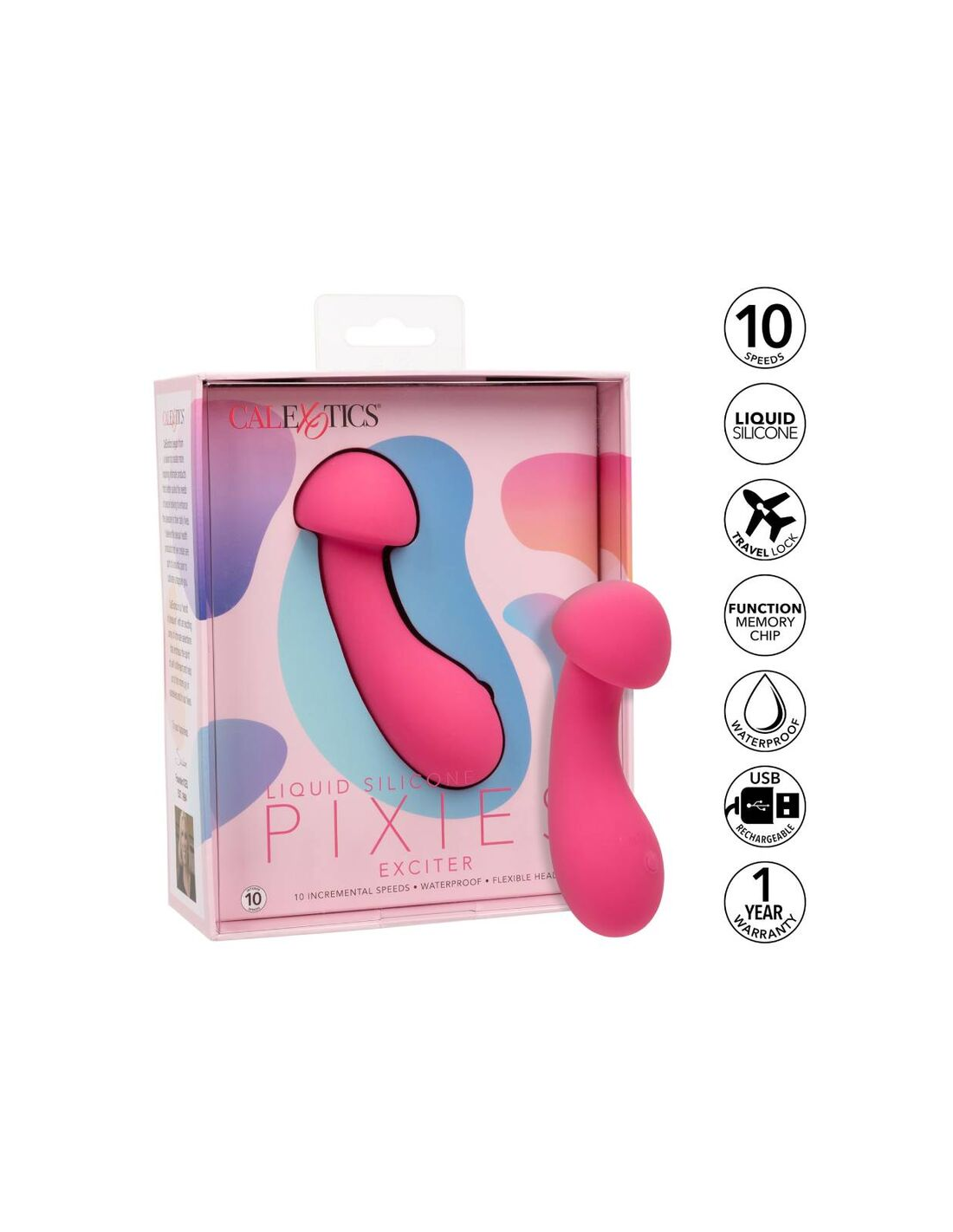 CALEXOTICSPresentamos el Pixies Exciter Rosa de Calexotics, un emocionante masajeador diseñado para llevar tus placeres a un nuevo nivel. Con su exclusiva tecnología de silicona líquida y su ingenioso diseño, este juguete es el compañero ideal que te permitirá explorar tus puntos de placer favoritos con una facilidad sin igual. Ya sea que estés buscando un momento de relajación o desees encender tu pasión, el Pixies Exciter está aquí para cumplir tus deseos.
