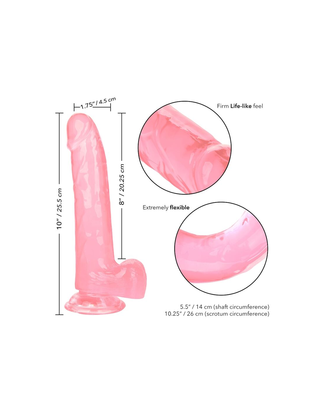 - Información Adicional: 20.3 cm de puro placer | Sensación firme y realista | Se dobla para posicionamiento multidireccional | Base robusta con ventosa