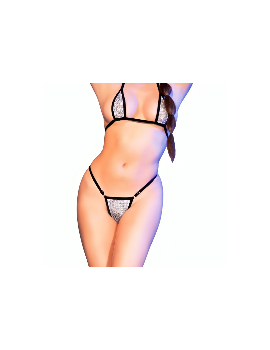 - CR-4660 Conjunto Brasier/Minibikini Negro/Plata con cristales brillantes