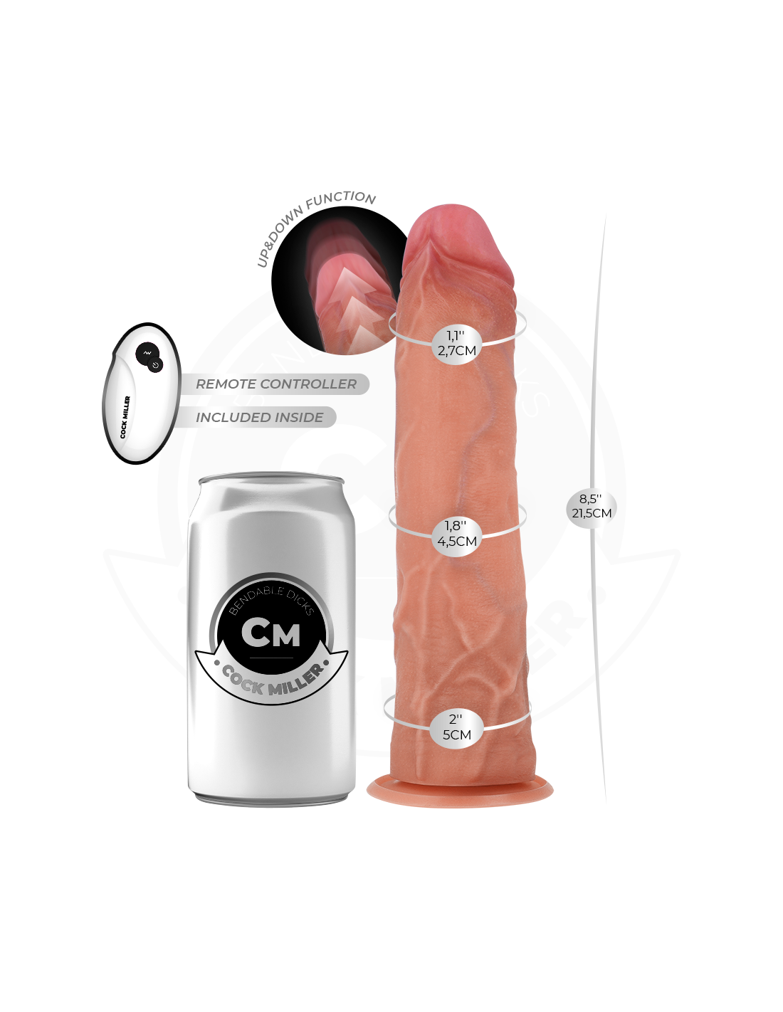 COCK MILLER - DILDO HIPERREALÍSTICO CON VENTOSA Y THRUSTING CON CONTROL REMOTO 21,5 CM