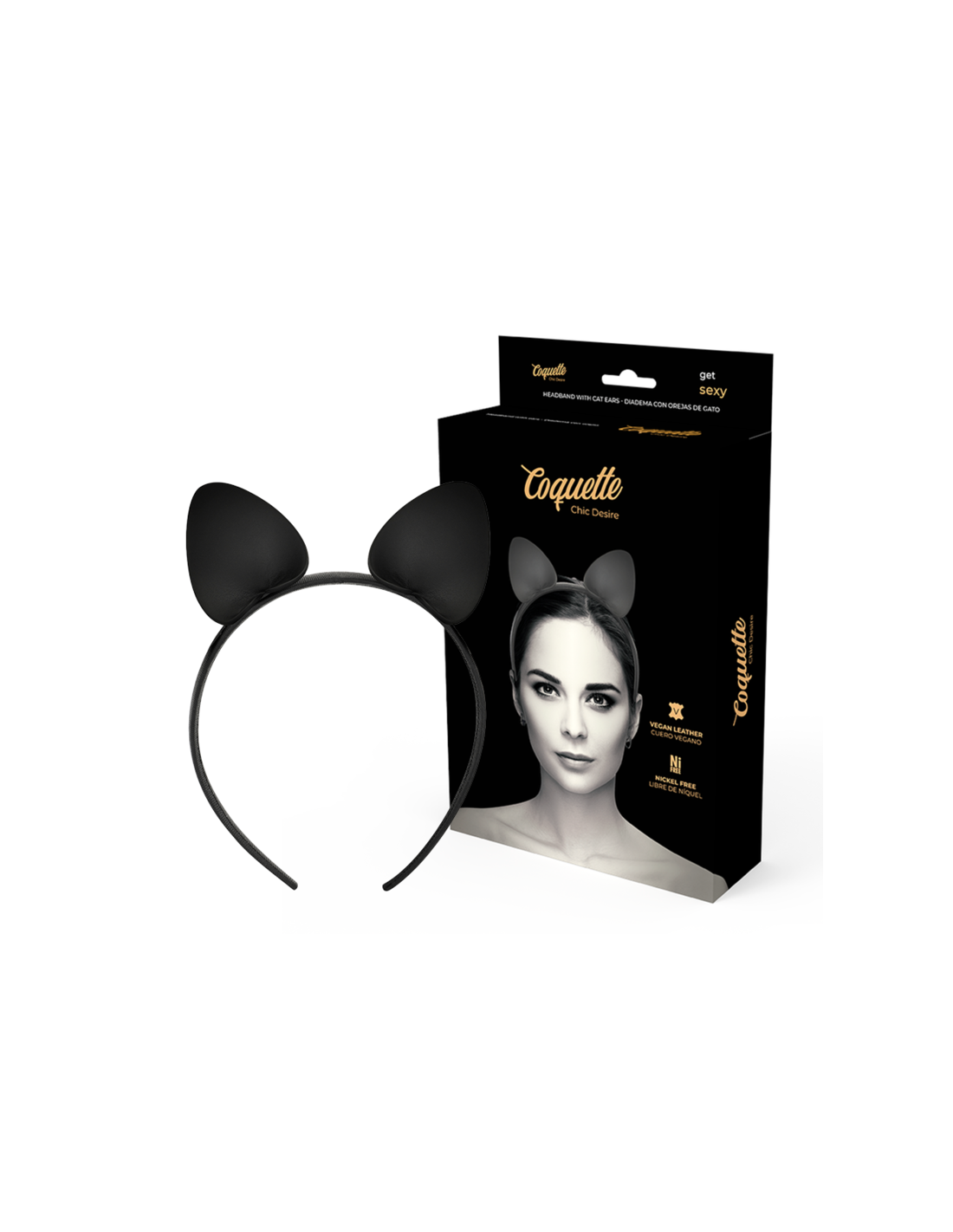 COQUETTE ACCESSORIESOriginal diadema con orejas de gato fabricado en cuero vegano. Un producto original que puede complementar tus conjuntos de lencería.