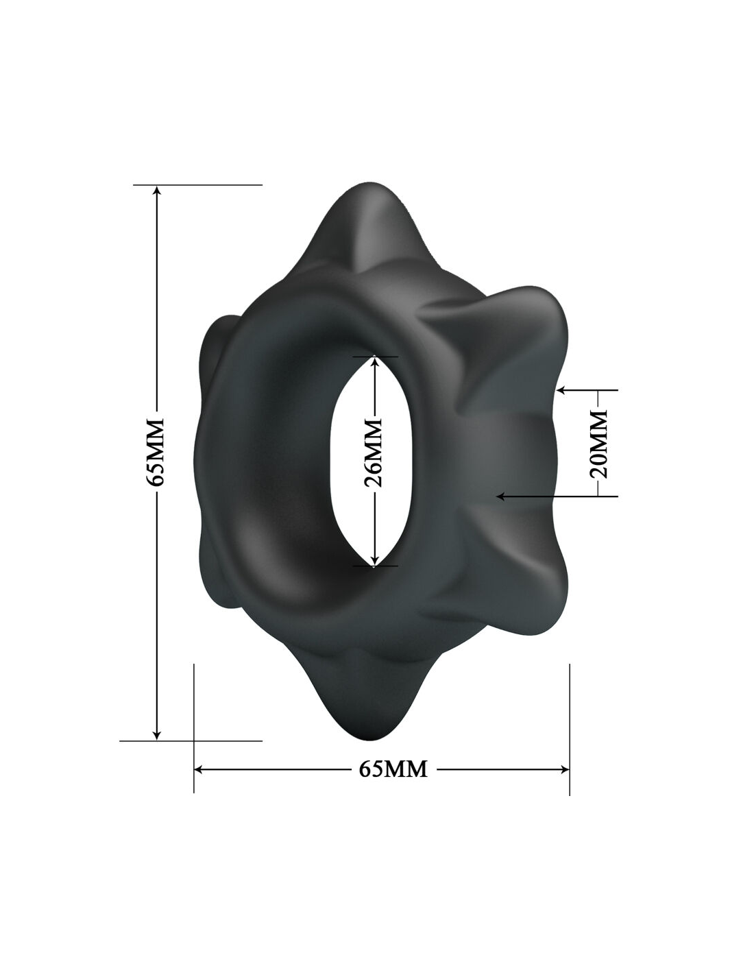 - Dimensiones del producto: 65 mm x 65 mm, diámetro interno 26 mm, grosor 20 mm