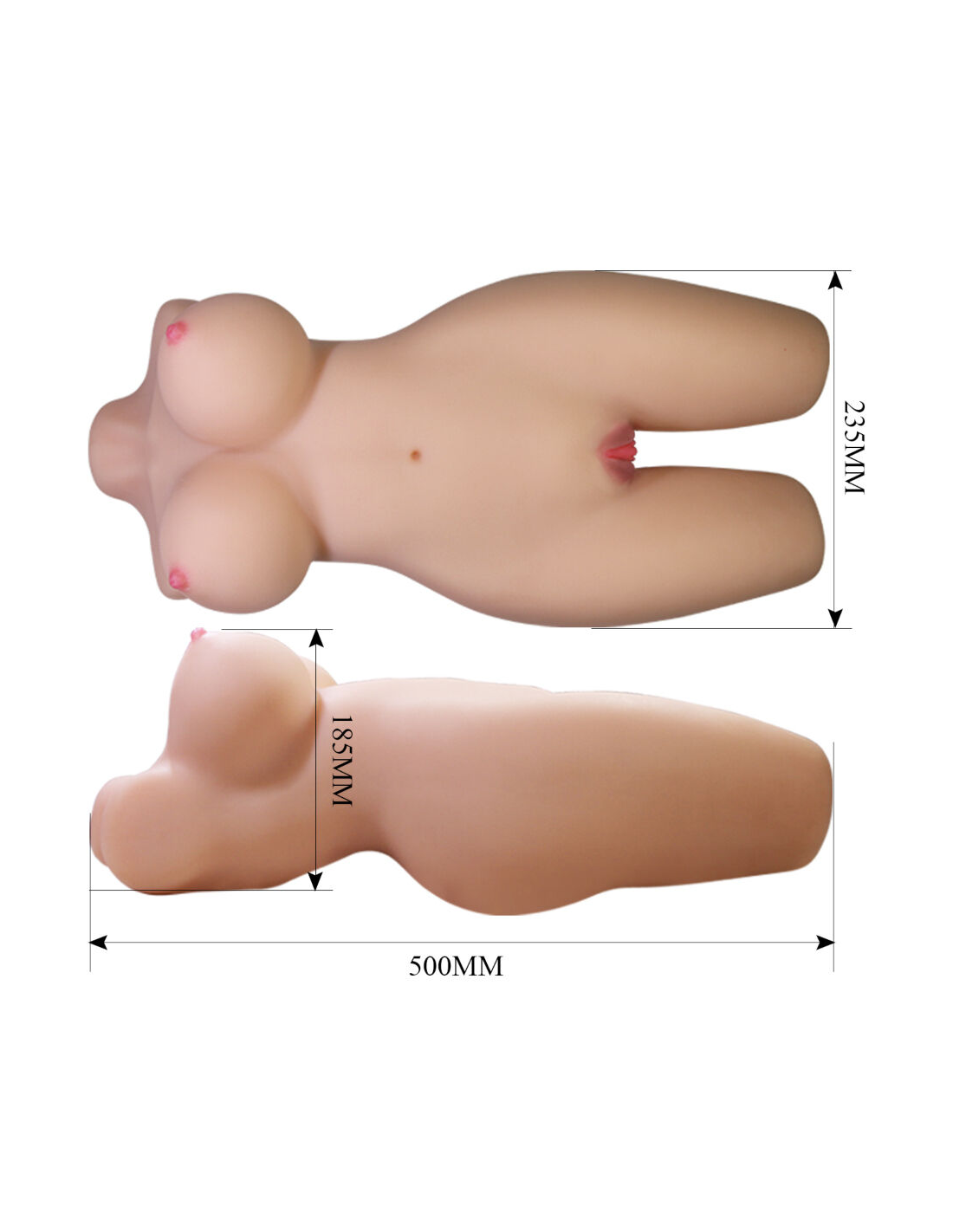 El diseño de Mia representa a una mujer madura con curvas irresistibles, que destacan por su feminidad y sensualidad. Sus grandes pechos redondos, su trasero firme y elástico y su cintura delgada crean una silueta perfecta que invita a disfrutar de cada detalle. La estructura interna está cuidadosamente esculpida para permitir que sus piernas se deslicen y se adapten a distintas posturas, brindando la posibilidad de explorar diversas posiciones de manera realista y cómoda. Fabricado en TPR de alta calidad, este masturbador ofrece una textura suave y agradable al tacto, totalmente segura para el cuerpo. Sus dos orificios independientes (vaginal y anal) han sido diseñados anatómicamente para proporcionar una estimulación intensa y realista, con una sensación fisiológica auténtica que imita fielmente la intimidad femenina.