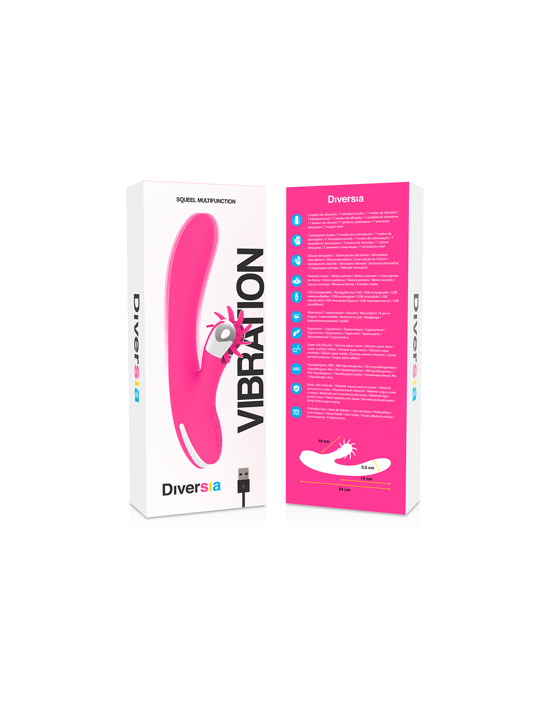 Una de las características más sobresalientes del Diversia Bunny es su versatilidad. Este vibrador cuenta con 7 modos de vibración y 7 modos de estimulación del clítoris, lo que permite a los usuarios personalizar su experiencia según sus deseos y preferencias. Desde suaves pulsataciones hasta vibraciones más intensas, hay un modo para cada estado de ánimo y cada deseo. Además, el Sistema Multi-función Squeel proporciona una estimulación adicional, lo que hace que este vibrador no solo sea un juguete, sino un compañero en la búsqueda del placer.