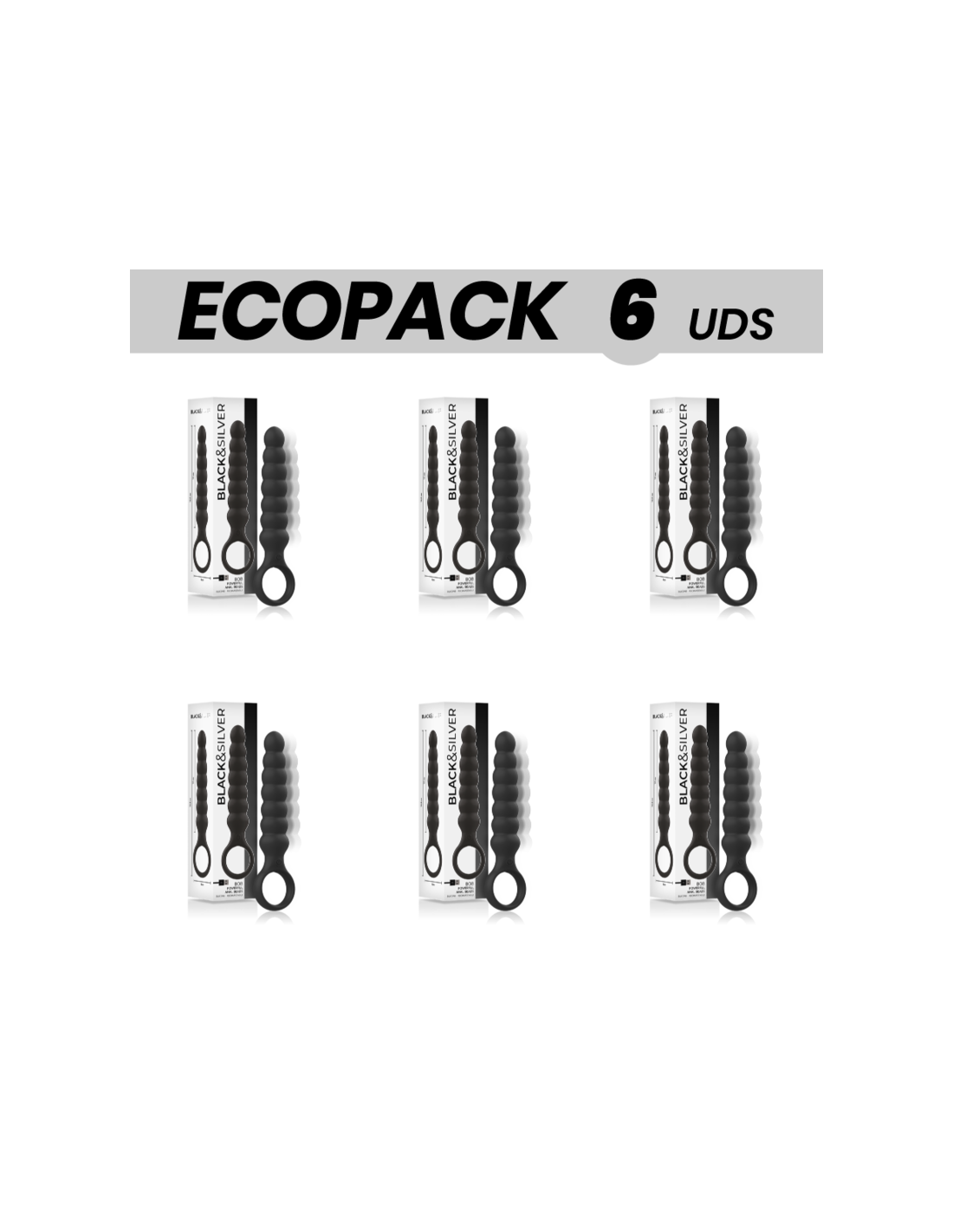 ECOPACK 6 UDS - BLACKandSILVER BOB POTENTE CADENA ANAL SILICONA