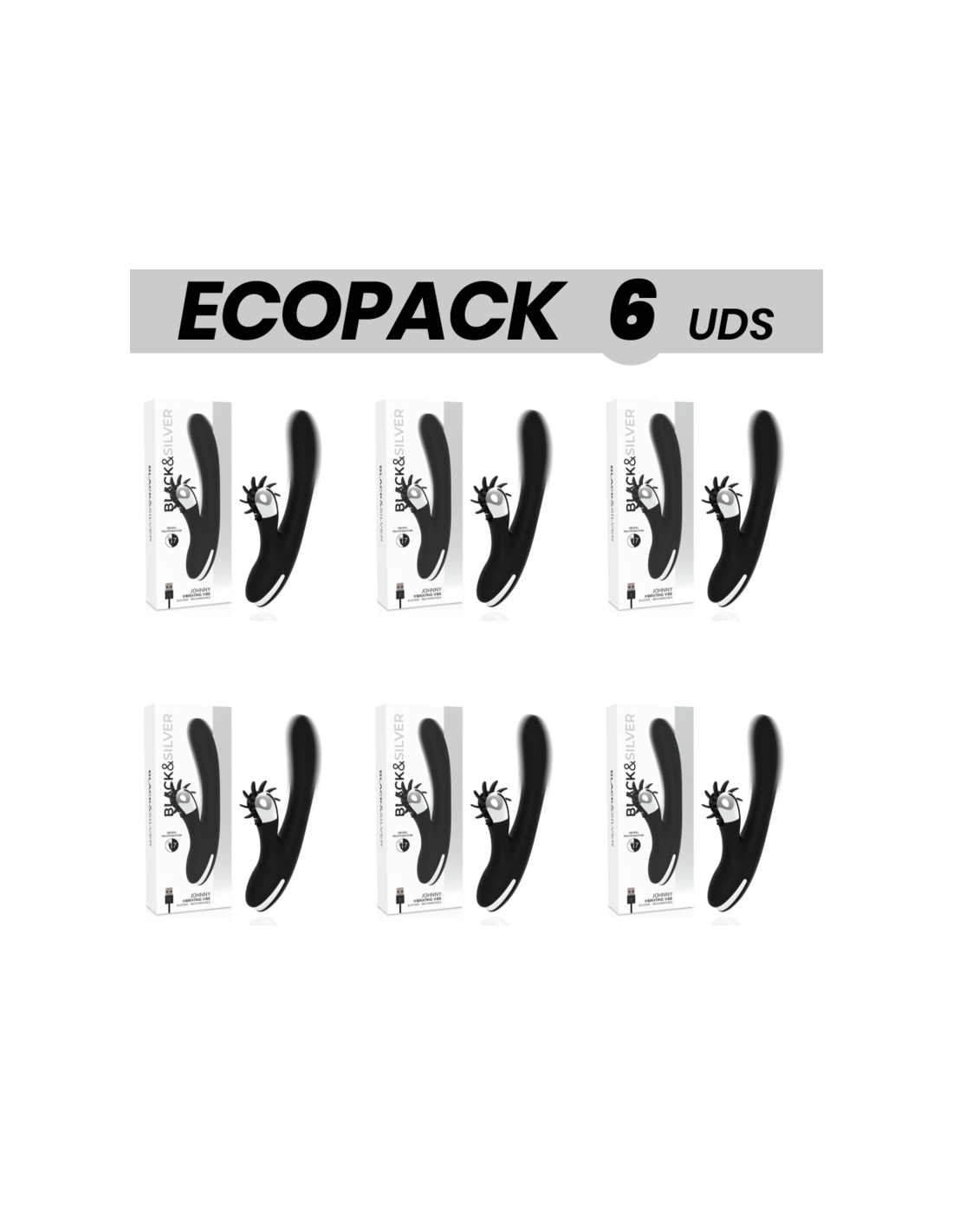 ECOPACK 6 UDS - BLACKandSILVER BUNNY JOHNNY VIBRATING VIBE