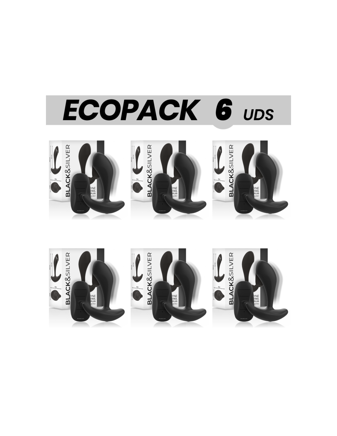 ECOPACK 6 UDS - BLACKandSILVER DWAYNE PLUG ANAL SILICONA CONTROL REMOTO