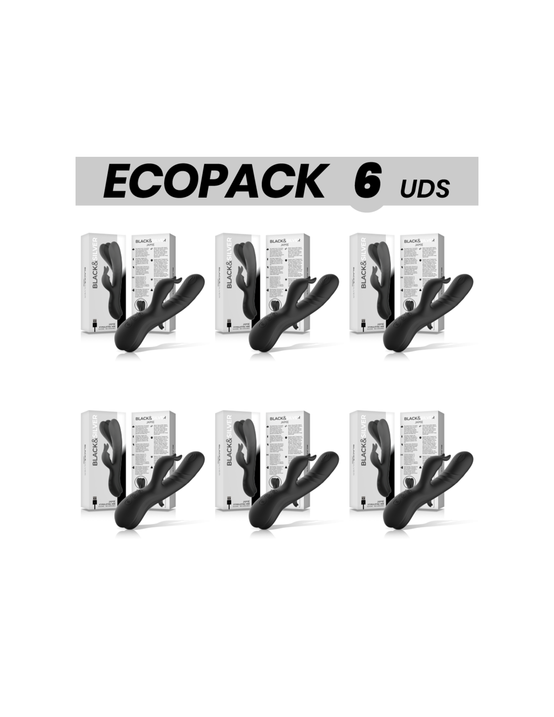 ECOPACK 6 UDS - BLACKandSILVER JAMIE VIBRADOR RABBIT EFECTO WAVE