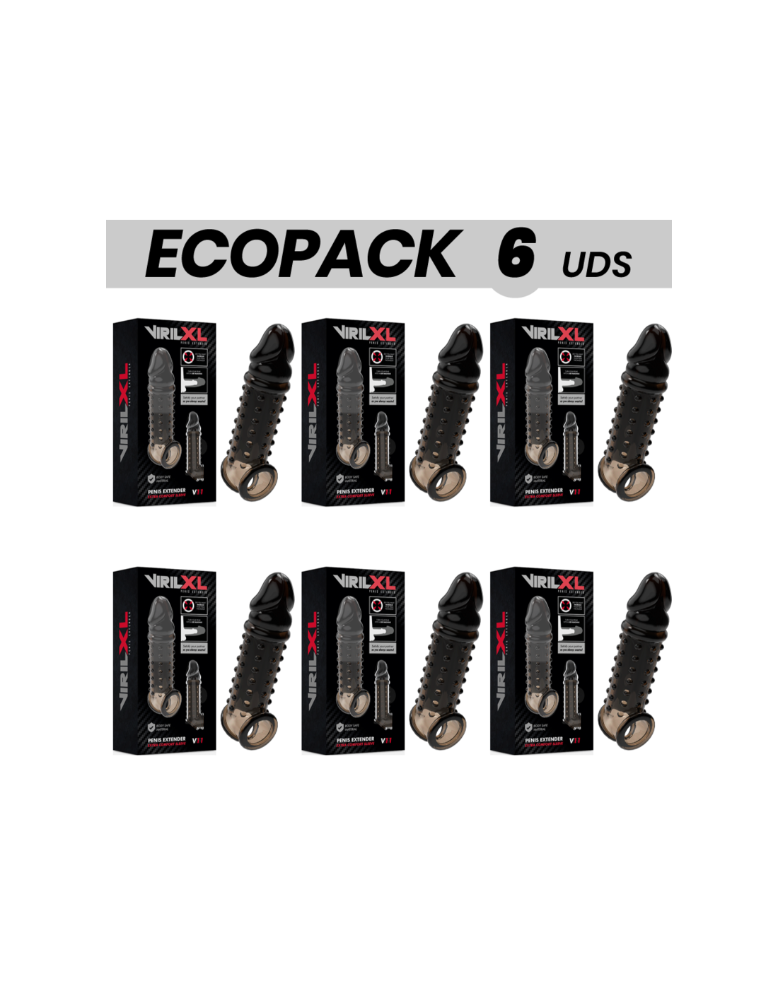 ECOPACK 6 UDS - VIRILXL EXTENSION Y FUNDA DE PENE V11 NEGRO