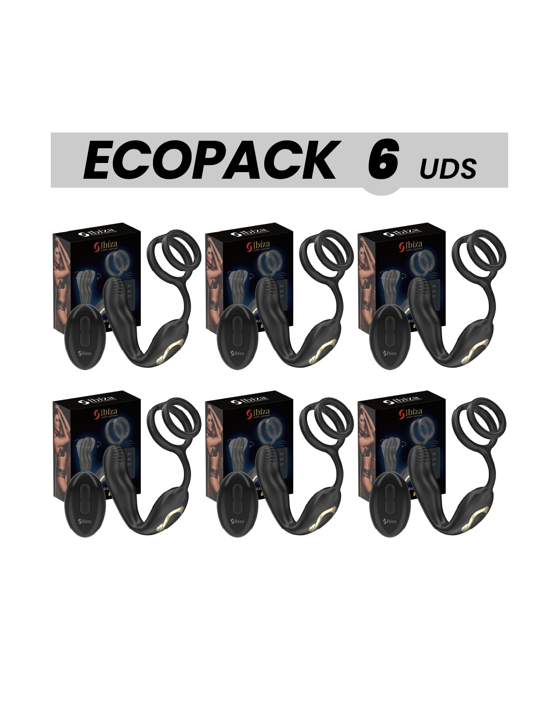 ECOPACKS 6 UDS - IBIZA WIGGLE PLUG ANAL ROTADOR CONTROL REMOTO CON VIBRO-PERINEO Y ANILLAS POTENCIADORAS DE PENE