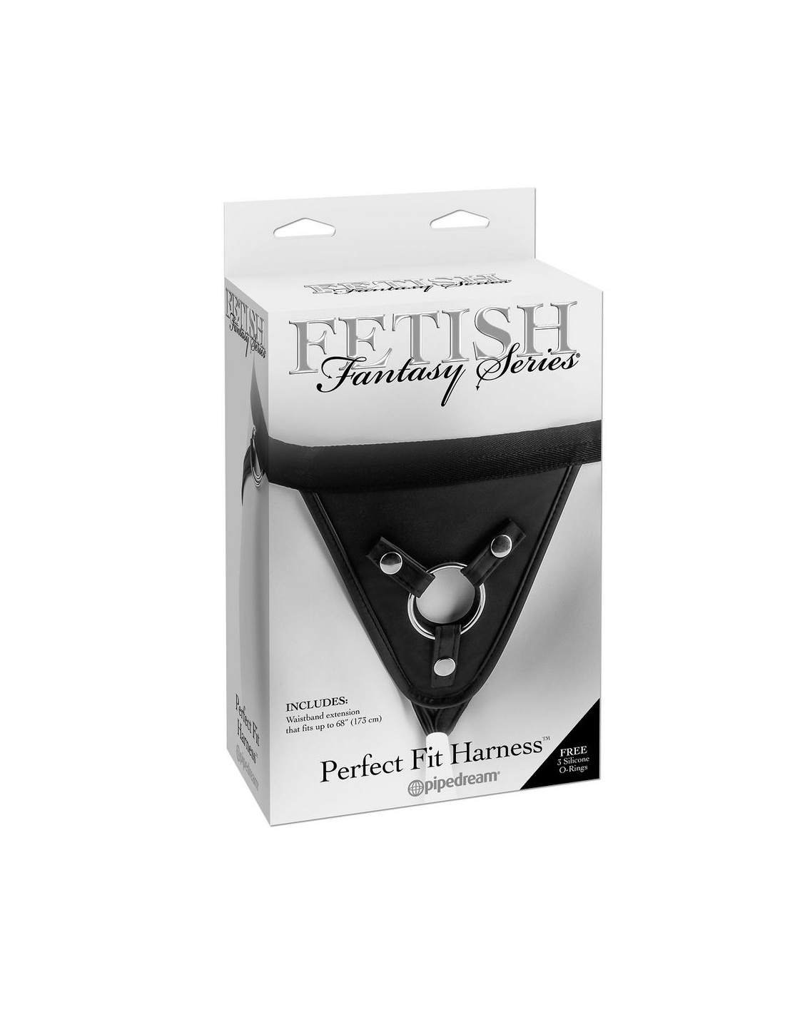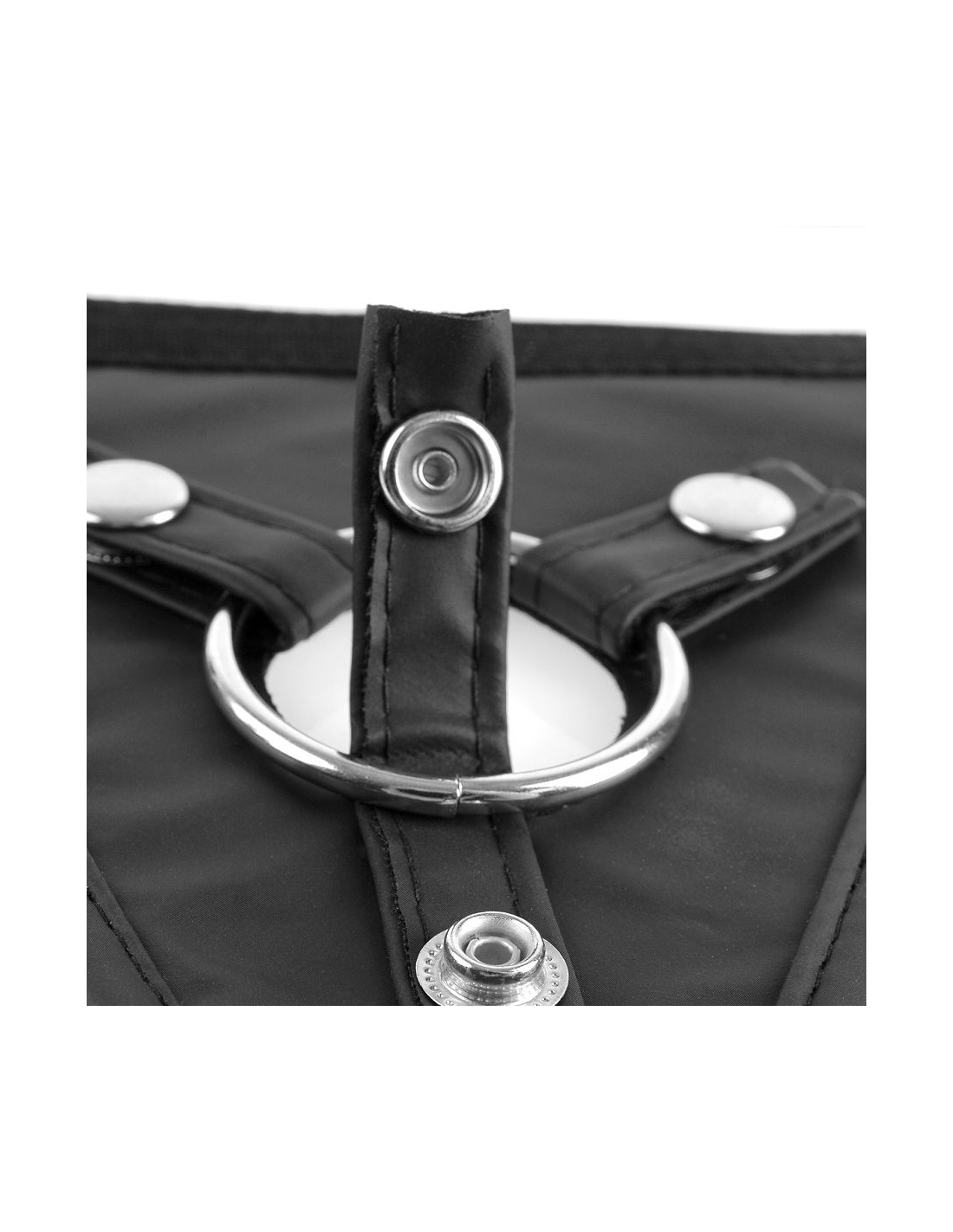 Diseñado para soportar juegos fetichistas extremos, este arnés cuenta con cintas ajustables y una anilla de silicona elástica en la junta tórica.