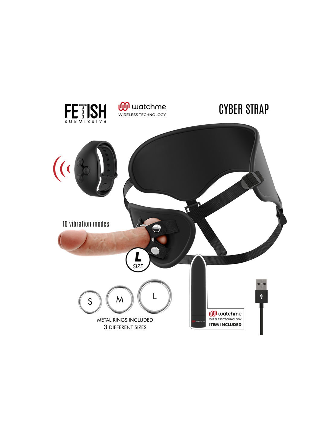 FETISH SUBMISSIVE CYBER STRAP - ARNÉS CON DILDO Y BALA CONTROL REMOTO TECNOLOGÍA WATCHME L