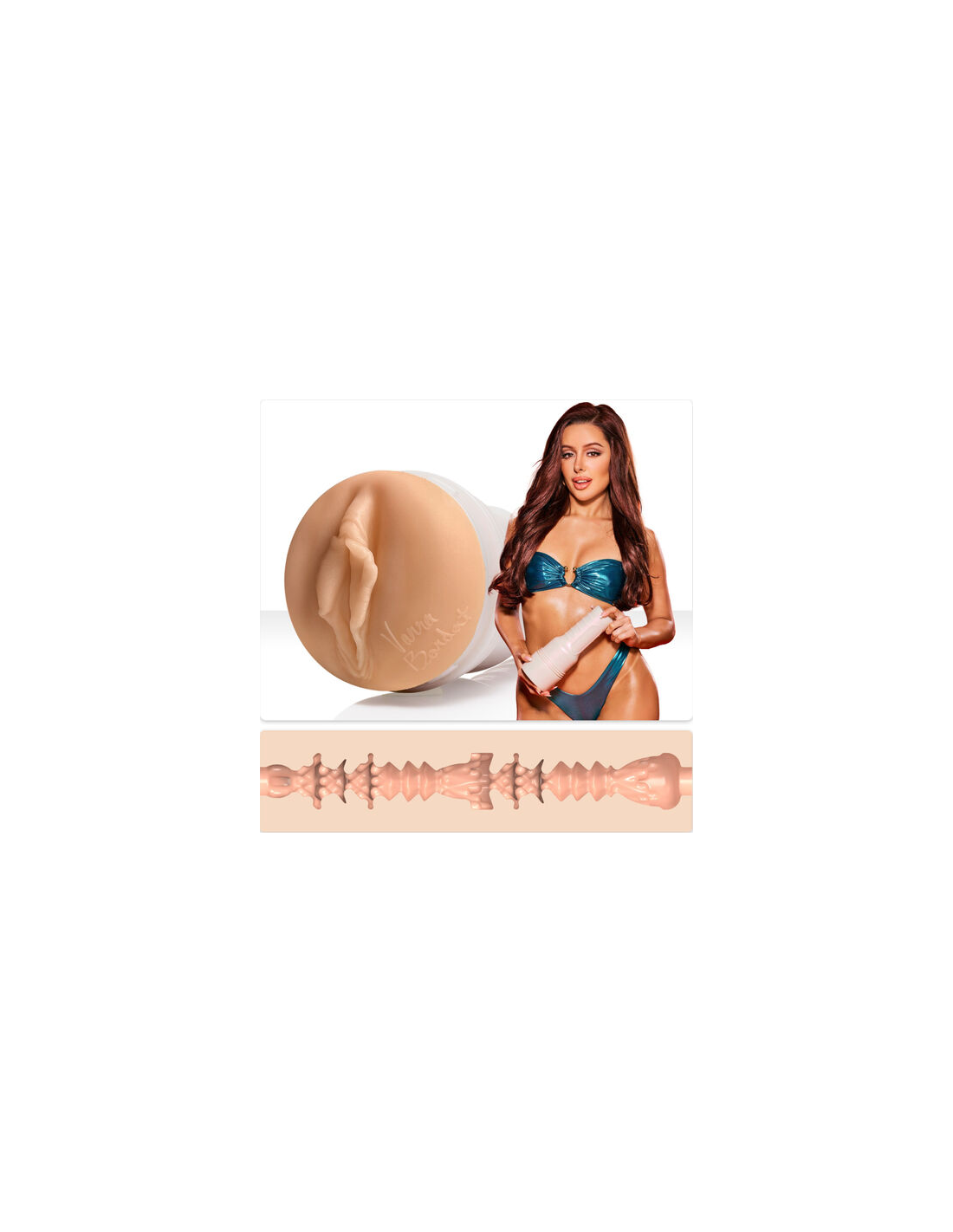 FLESHLIGHTEl Fleshlight inspirado en Vanna Bardot ha sido diseñado para ofrecer una experiencia envolvente, suave y profundamente placentera. Su textura interna combina una entrada delicada con una cámara sedosa repleta de protuberancias y estrías que intensifican cada movimiento.