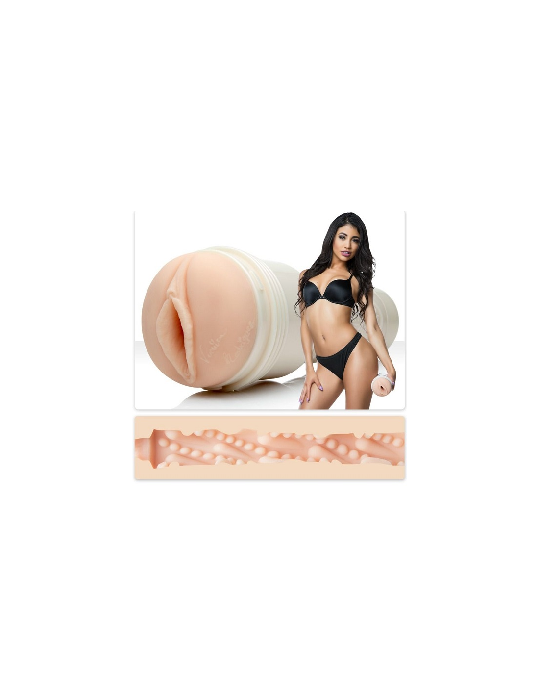 Masturbador masculino Fleshlight moldeado a partir de Verónica Rodríguez, con textura envolvente y sensaciones intensas para una experiencia hiperrealista y placentera.