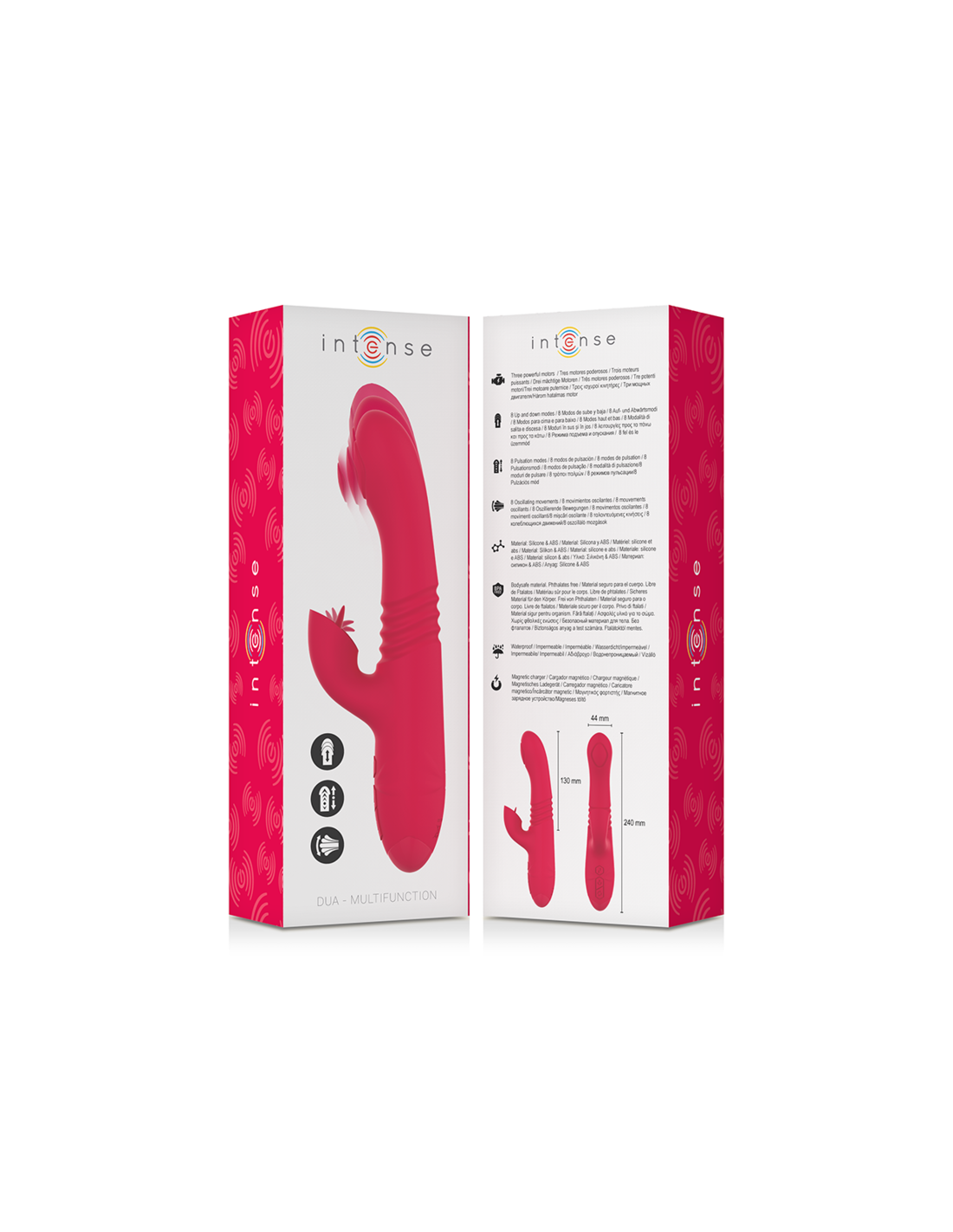 INTENSE HIGH TECHEl vibrador multifunción DUA de la marca INTENSE es un innovador juguete sexual diseñado para ofrecer una experiencia de placer sin igual. Con su llamativo color rojo y una serie de características avanzadas, este vibrador está diseñado para satisfacer tus deseos más profundos. Con su diseño ergonómico y su versatilidad, el DUA se convierte en un aliado perfecto para explorar nuevas dimensiones de placer.