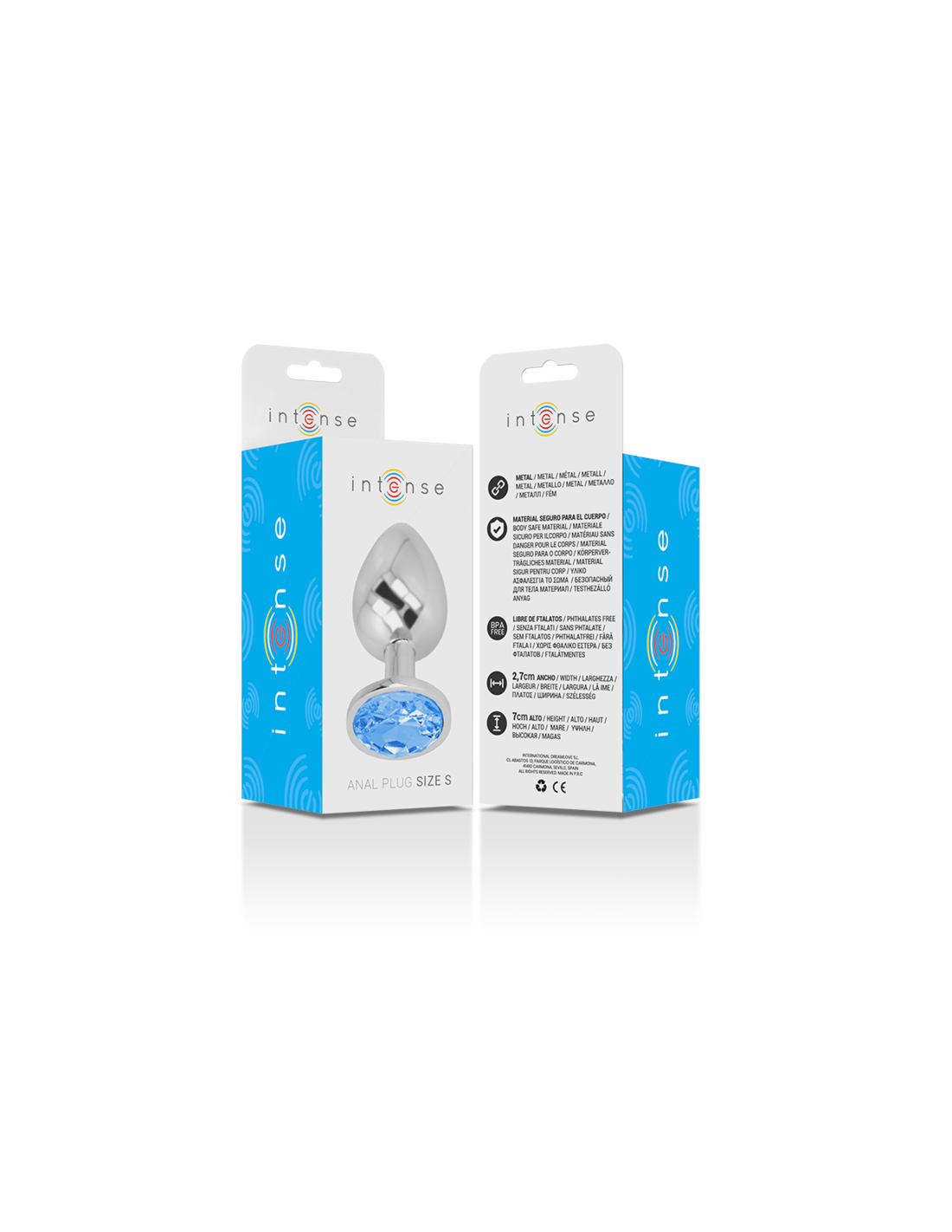 Deja que tus glúteos brillen con el plug anal de Intense, decorado con joya de diamante. Este plug de alta calidad fabricado en metal con detalles brillantes en color azul, añade glamour a tus aventuras anales anales.