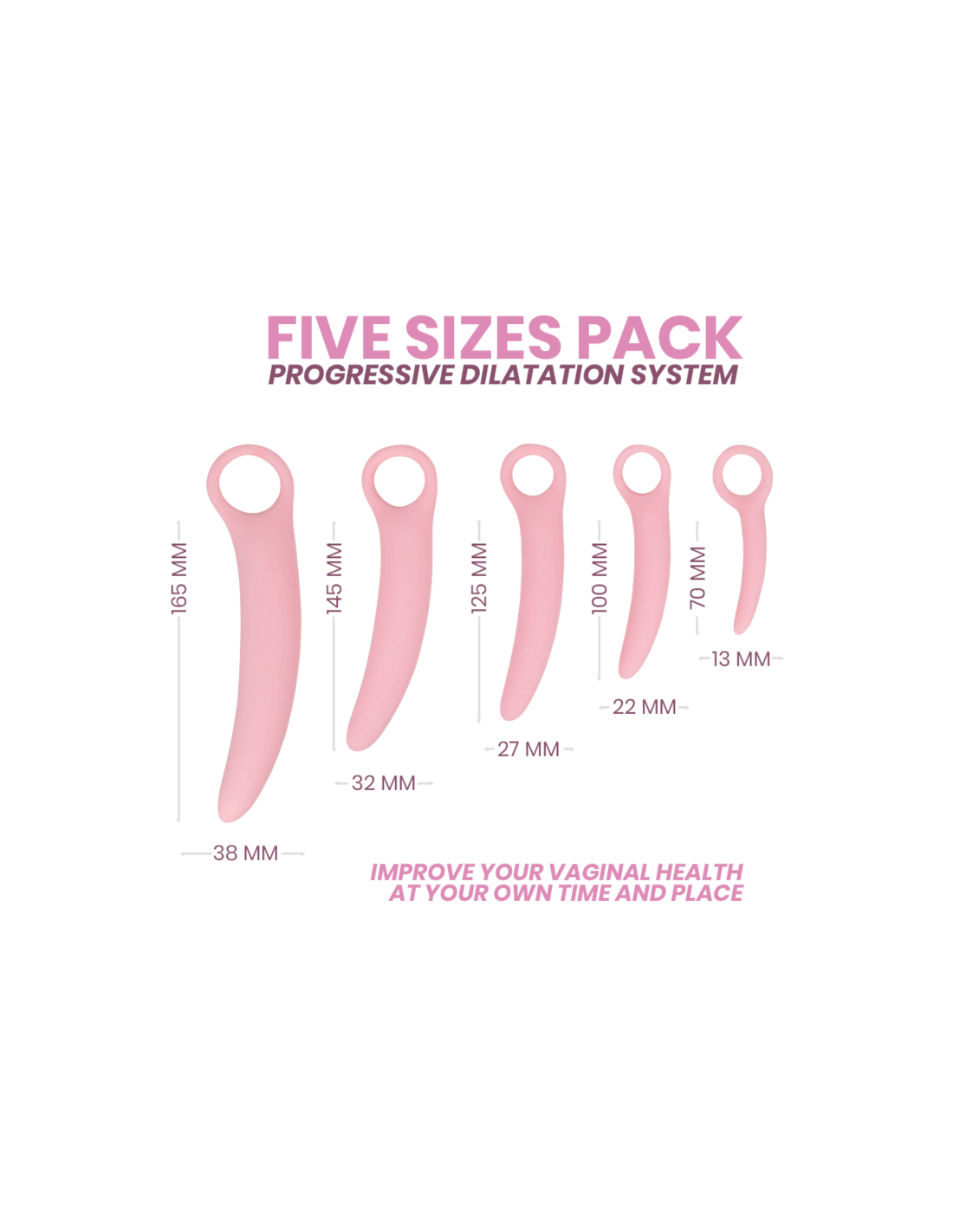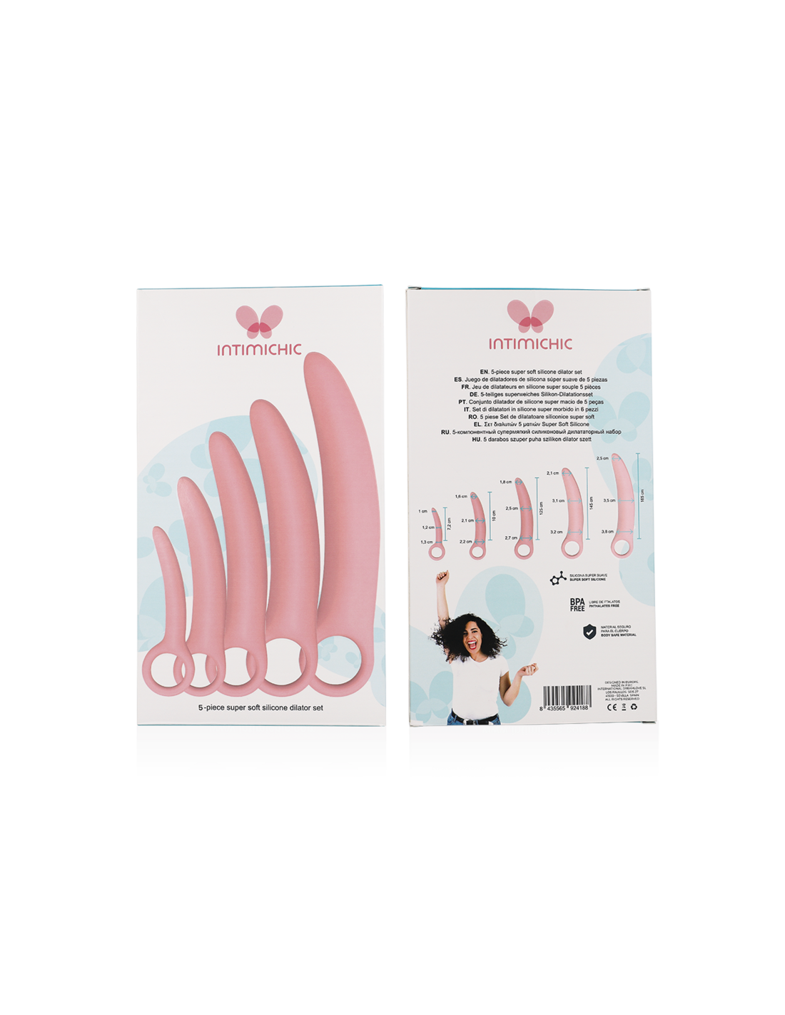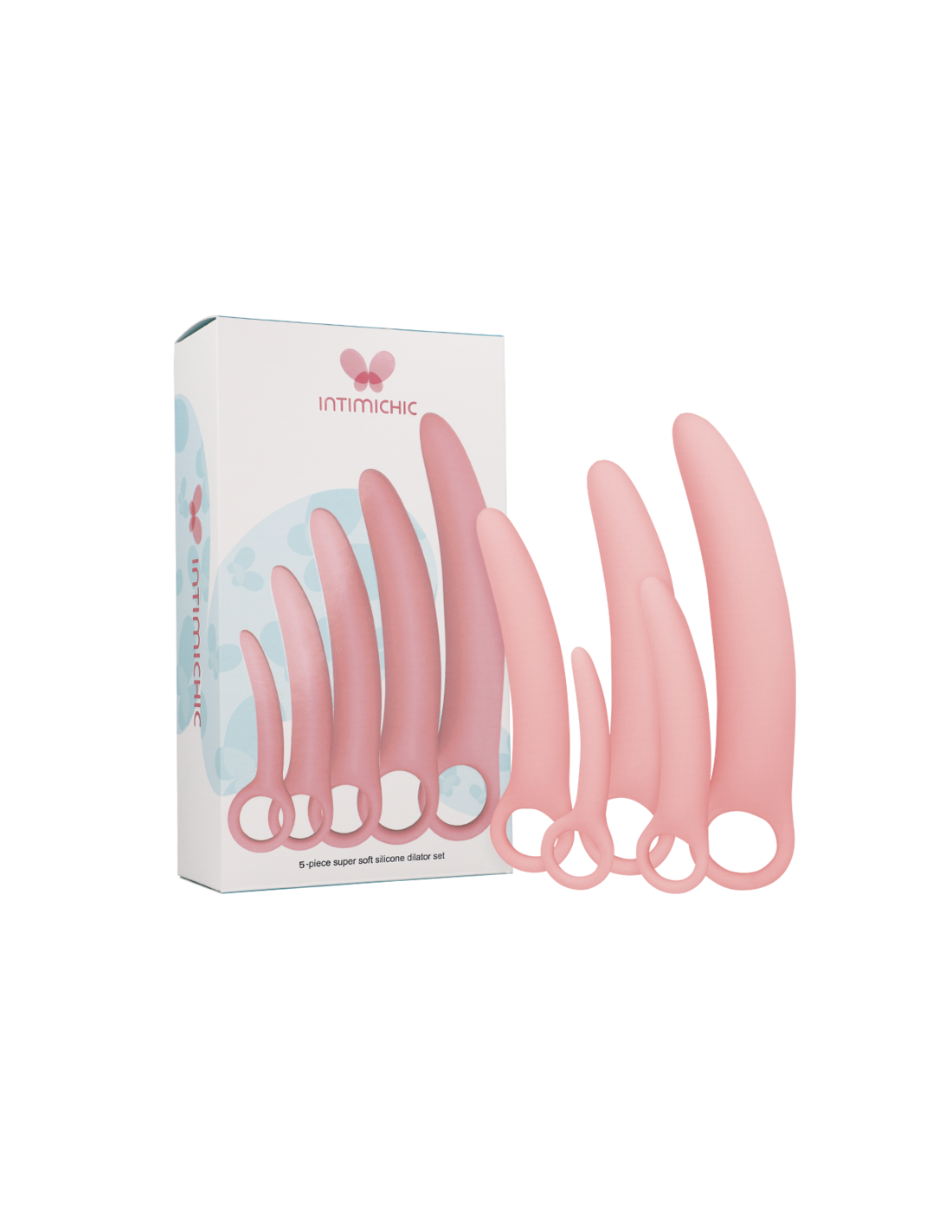 El INTIMICHIC está compuesto por 100% silicona médica, lo que lo convierte en un producto seguro y duradero. Este conjunto incluye cinco dilatadores de diferentes tamaños, lo que permite una dilatación progresiva y cómoda. Cada dilatador está diseñado con un bucle para los dedos que facilita su uso, permitiendo una experiencia sin complicaciones.