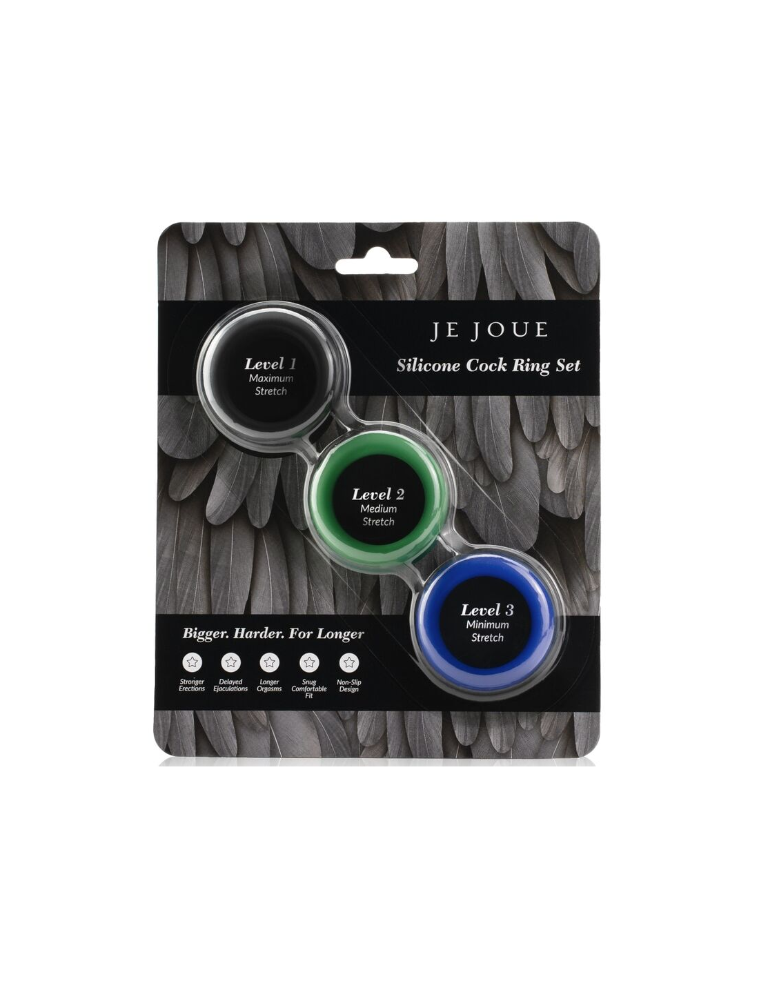 El set de anillos de silicona de Je Joue tiene 3 anillos de silicona de alto grado que van apretando progresivamente, lo que le permite experimentar con diferentes sensaciones y combinaciones, ¡cada anillo tiene una textura suave y sedosa que garantiza la máxima comodidad y se puede usar alrededor del pene, los testículos o ambos!