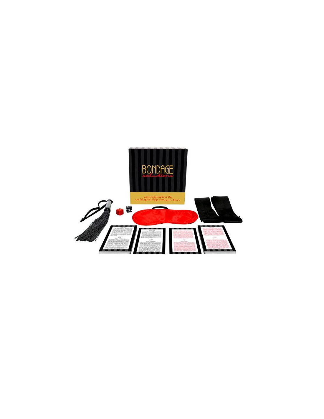 - 36 tarjetas de Bondage Seduction: Cada tarjeta contiene una sugerencia o un desafío que te ayudará a descubrir nuevas formas de disfrutar de la intimidad.