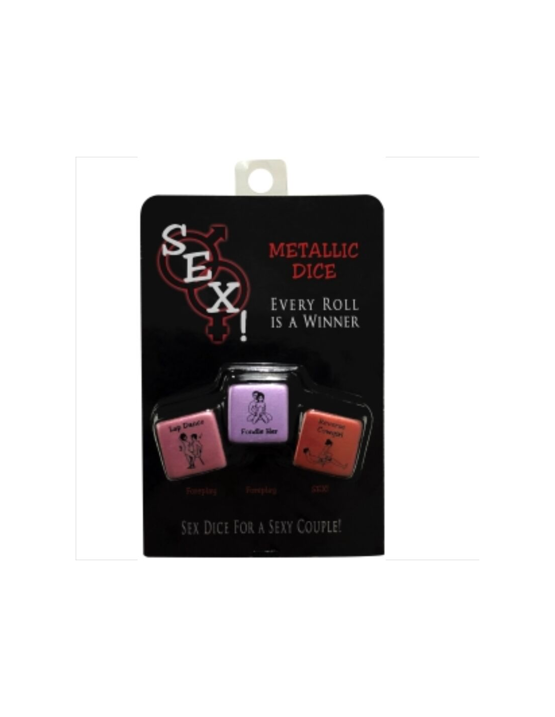 Dados sexuales para una pareja sexy! Tres dados vibrantes de colores metálicos para los juegos previos y sexuales. Túrnense para tirar los dados. Representa cada acción previa en los dos primeros dados. Si se obtiene un comodín, él o ella decide qué acción previa depende del comodín que se obtenga. Si salen ambos comodines, ¡tú ganas! Cuando ganes, también podrás representar el tercer dado "SEXO" después de los dados de juego previo. El rodillo interpreta cómo se representa cada ilustración del dado.