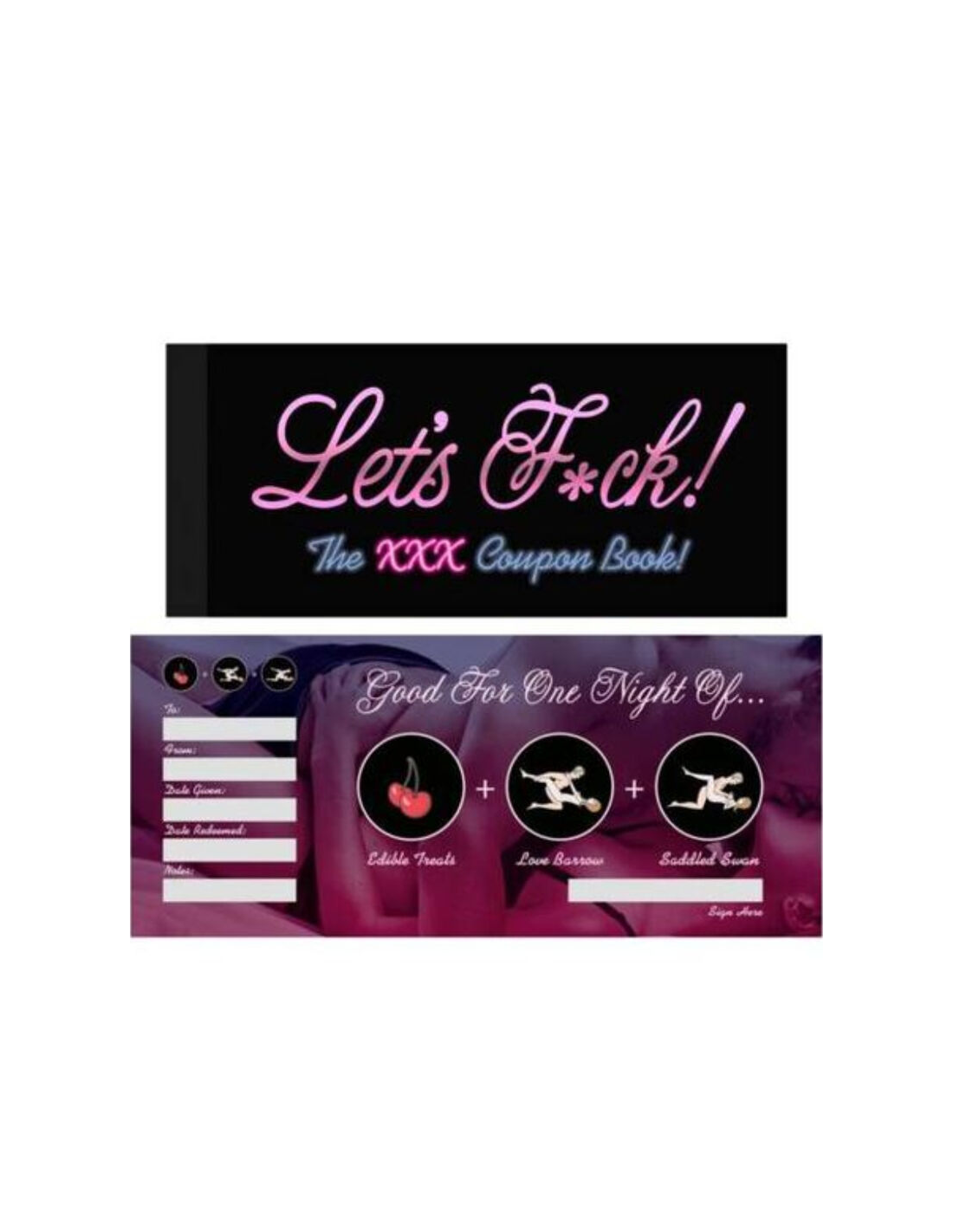 Haz de cada noche una aventura diferente con Let's F*ck Coupons. Compra ahora y lleva la pasión a otro nivel. ¡Sorprende a tu pareja con este gesto único y sensual!
