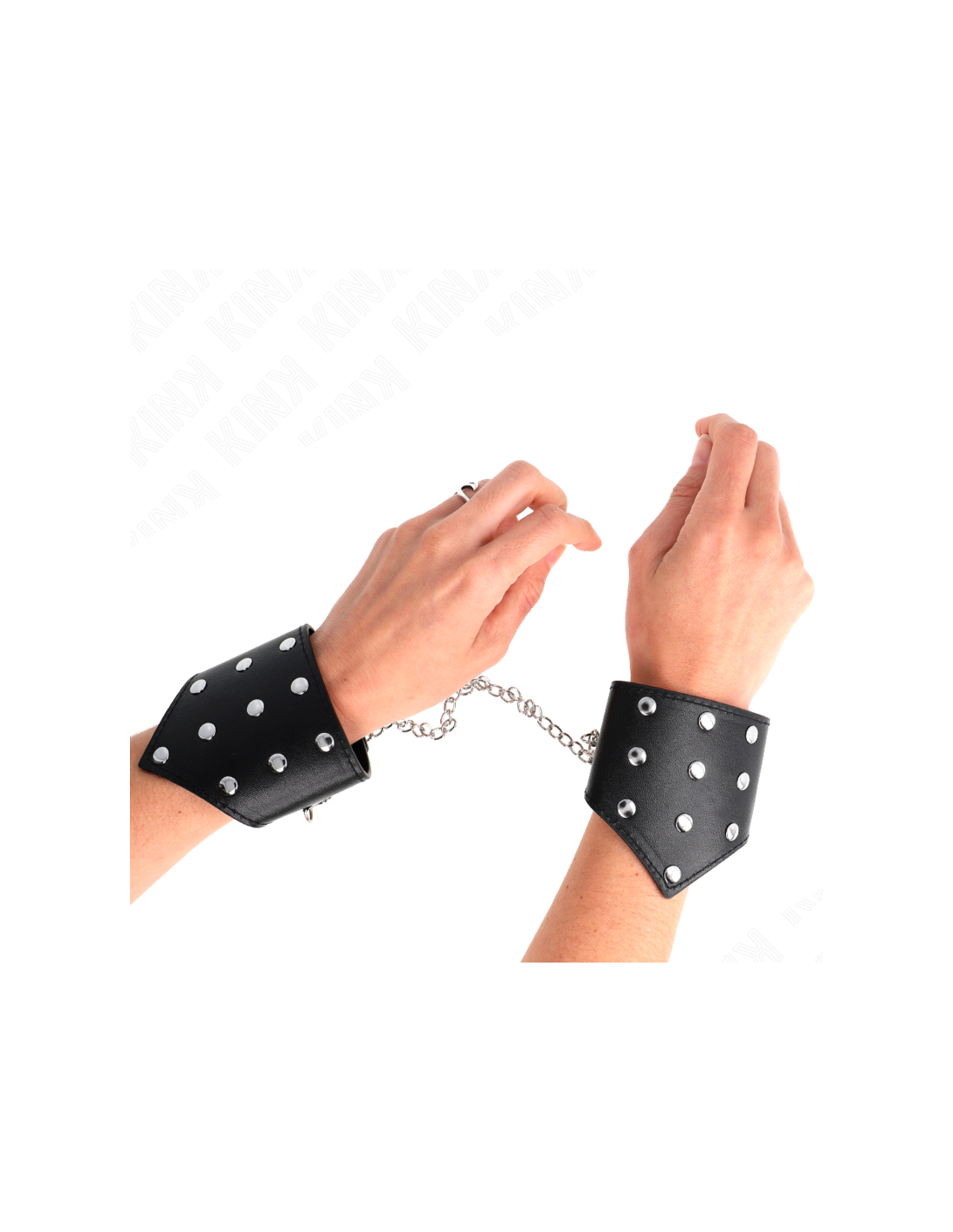 KINK - MUÑEQUERAS ESTILO PUNTIAGUDO NEGRO CON CADENA AJUSTABLE 17-23 CM X 8.5 CM