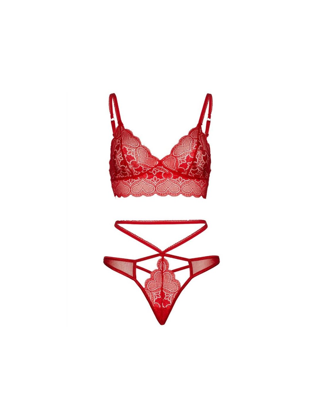 Set de dos piezas compuesto por sujetador de encaje y tanga con recorte a juego fabricado por la prestigiosa marca de lencería Leg Avenue.