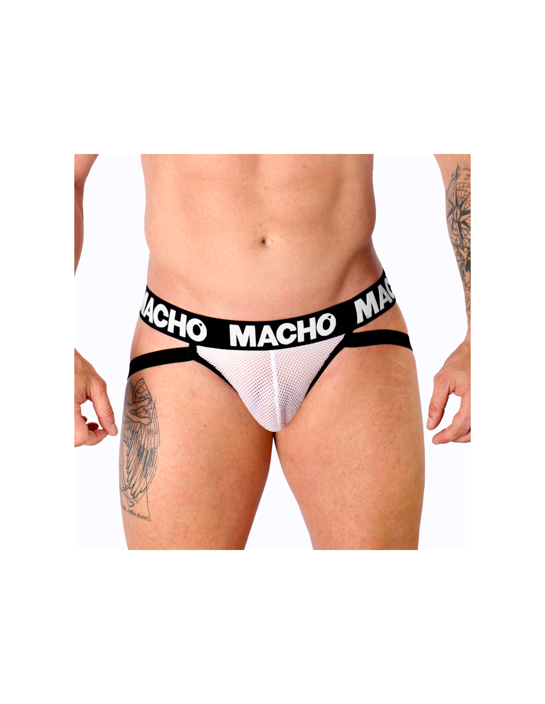 MACHO UNDERWEARUn suspensorio semitransparente MX26X1 JOCK blanco con tejido elástico es una prenda íntima que combina funcionalidad y sensualidad de una manera única. Este ingenioso diseño se distingue por su capacidad para brindar un soporte frontal excepcional mientras permite una sugerente visión a través de su tejido de rejilla. En definitiva, esta prenda se convierte en una fusión perfecta de comodidad y erotismo.