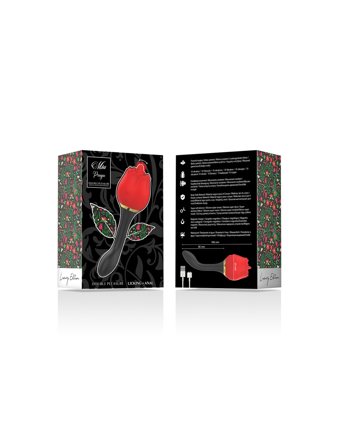 MIA PRAGA es mucho más que un simple juguete sexual; ofrece múltiples formas de juego y exploración. Puedes colocar la rosa de silicona de forma segura en la palma de tu mano y utilizarla en el clítoris o en otras zonas erógenas, disfrutando de sus profundas vibraciones. También puedes descubrir diferentes entornos y posiciones para adaptarlo a tu experiencia personal, lo que lo hace perfecto para la doble estimulación en clítoris y zona anal.