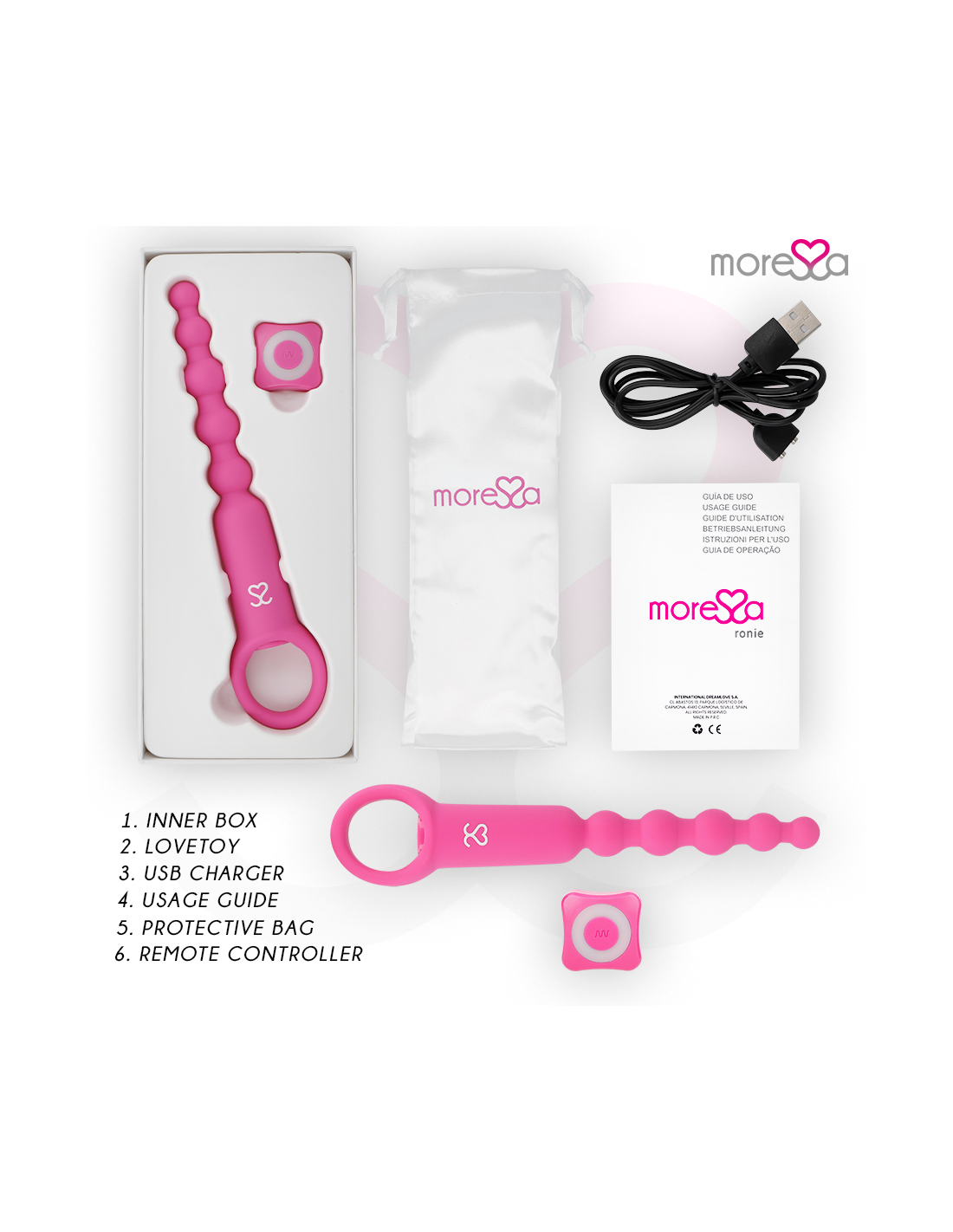Como ocurre con todos los objetos de placer MORESSA, Ronie está diseñado para proporcionar un intenso gozo físico y una absoluta paz espiritual en cualquier situación y bajo cualquier circunstancia