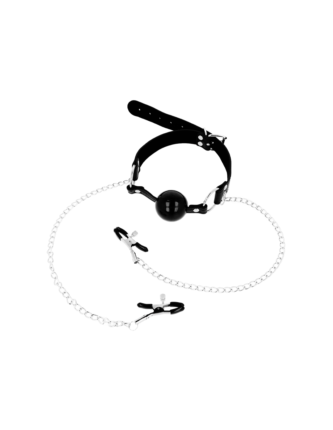OHMAMA FETISH - MORDAZA BOLA NEGRA CON PINZAS PEZONES