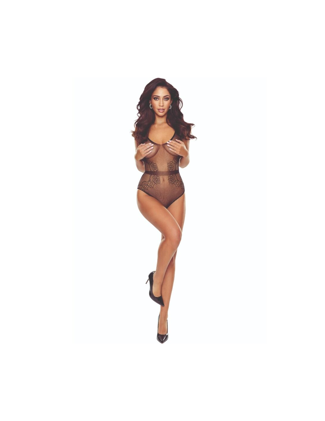 Confeccionados con una mezcla de 80% poliamida y 20% elastano, estos bodystockings ofrecen una elasticidad superior, gran adaptabilidad y una suavidad que acaricia la piel. Su estructura de malla fina y encaje floral estratégicamente colocado crea un efecto visual hipnotizante, jugando con las transparencias y realzando la figura con un ajuste ceñido pero cómodo.