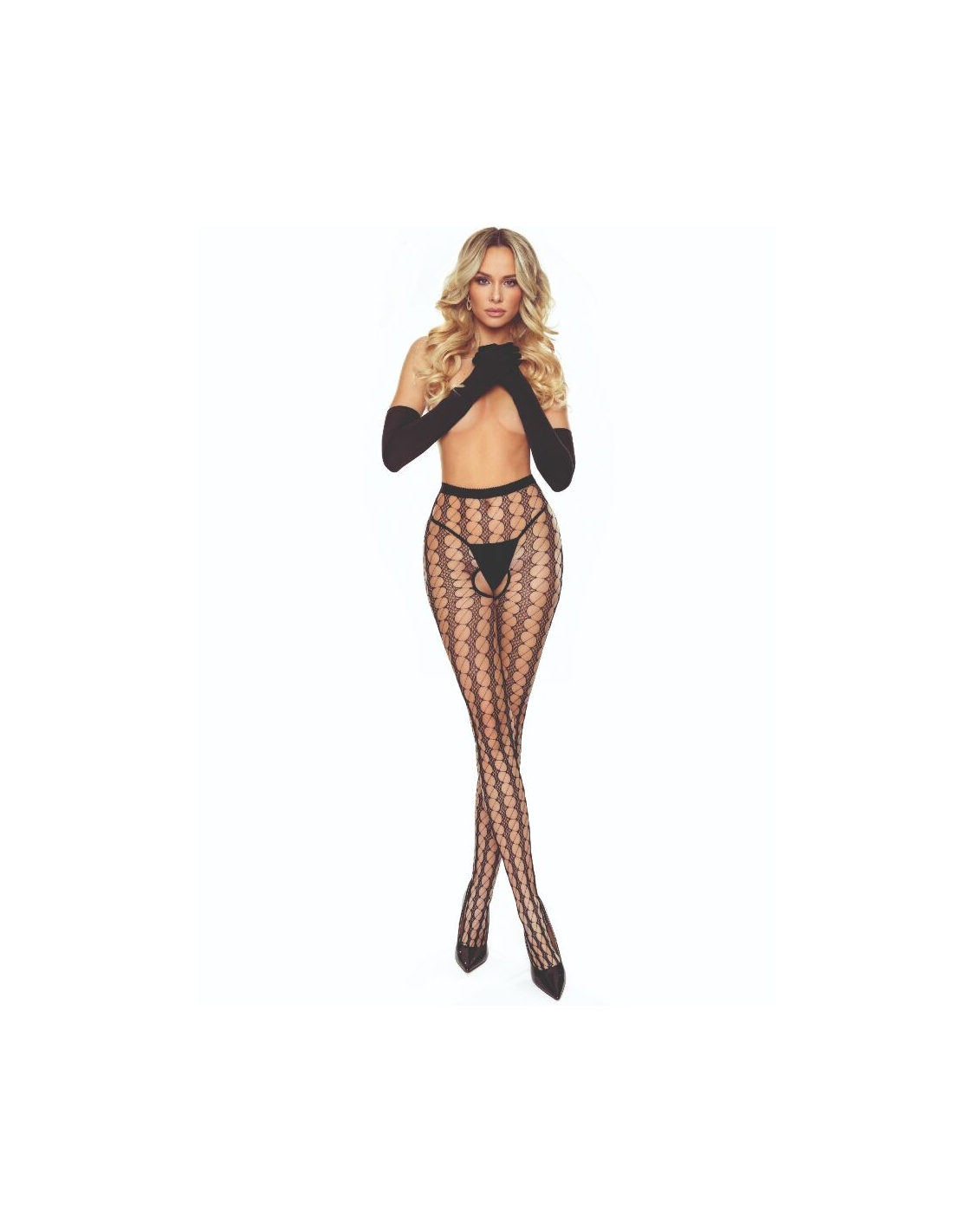 El detalle más distintivo de este modelo es su zona íntima abierta crotchless, cuidadosamente diseñada para aportar un toque atrevido sin renunciar al estilo ni a la elegancia. Esta apertura estratégica no solo añade un componente altamente erótico, sino que también convierte estas medias en una prenda ideal tanto para sorprender en ocasiones especiales como para elevar la experiencia en la intimidad sin necesidad de retirarlas.
