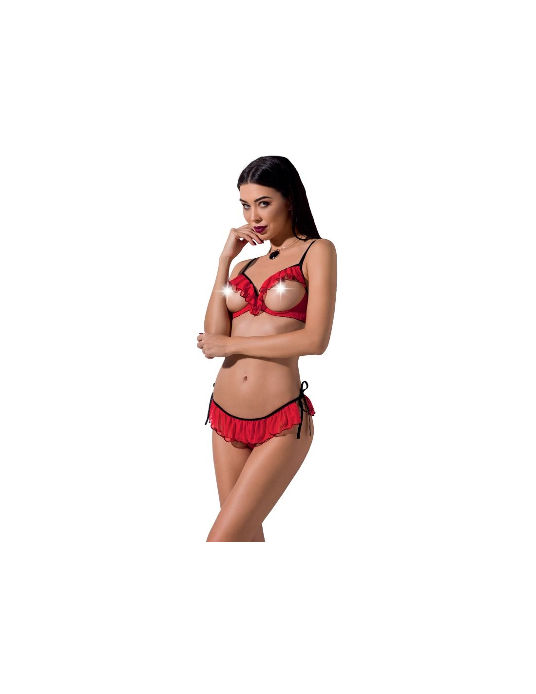 Este set está compuesto de fabulosa de lencería con un diseño espectacularmente sexy con el que te convertirás en una bomba de seducción, fabricado por la prestigiosa marca de lencería sexy Passion