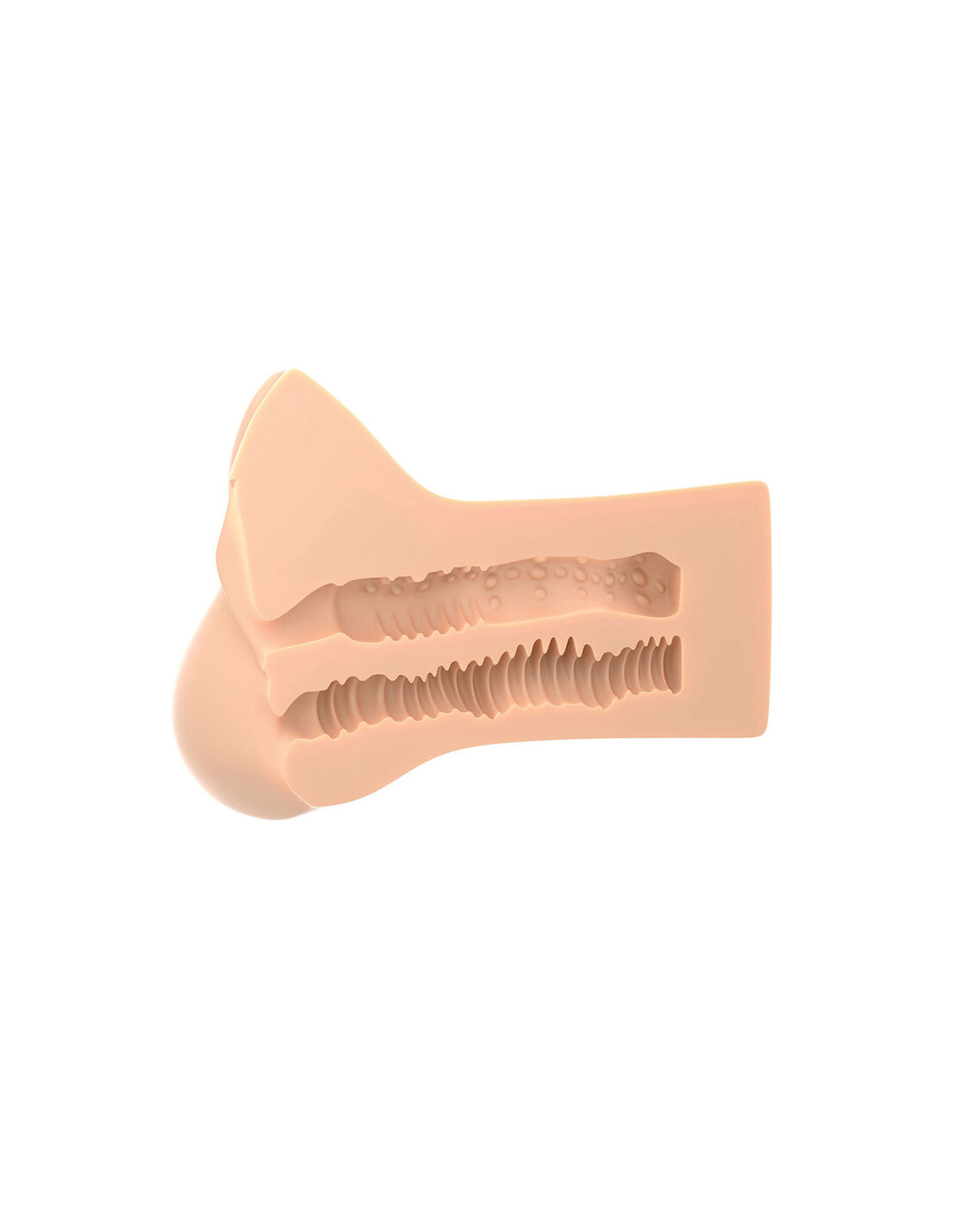 ¡Este masivo estimulador cuenta con una textura de piel súper detallada y dos agujeros diferentes para la penetración.