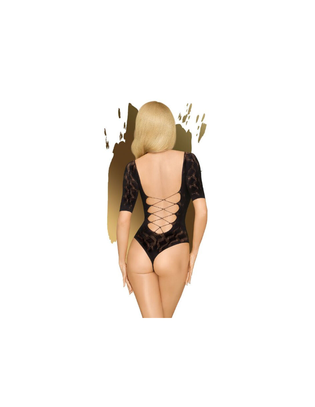 - ¡Ahora hace calor!Con este cuerpo, tu amado no solo se recostará a tus pies, sino que también te saludará lleno de emoción.El cuerpo de cuerda convence por su diseño ajustado con mangas cortas.El escote pronunciado en la parte delantera y trasera enloquecerá rápidamente a tu contraparte, mientras que los tirantes le dan al cuerpo un detalle especial de cordones.El patrón de rombos geométricos realza tus curvas y llama la atención sobre lo esencial.Preséntese con confianza y deje que su amado realice su saludo frente a usted.