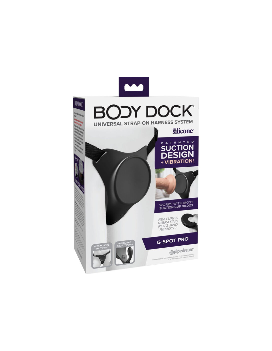 Sin anillos. Sin broches. Sin complicaciones. Esta es la premisa detrás del Body Dock G-Spot Pro, que utiliza un diseño patentado PUSH-AND-PLAY que incorpora vibración y succión. Con este sistema, la instalación y utilización de un dildo se vuelve sumamente accesible y rápida, haciendo que los juegos en pareja sean aún más espontáneos y placenteros.