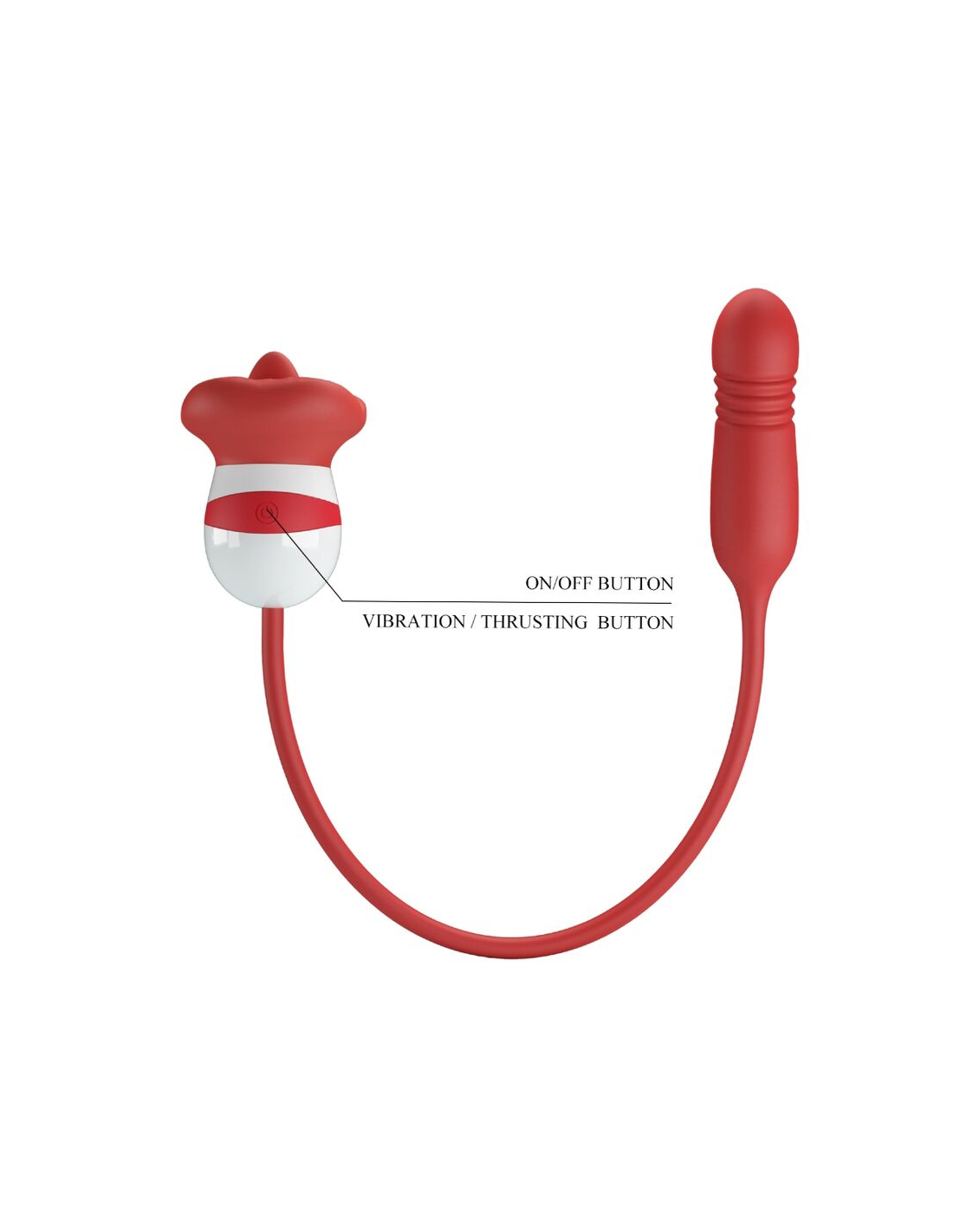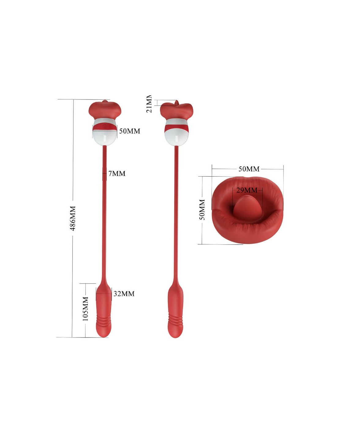Este vibrador con forma de boca tiene una bala de empuje única y una lengua que lame.