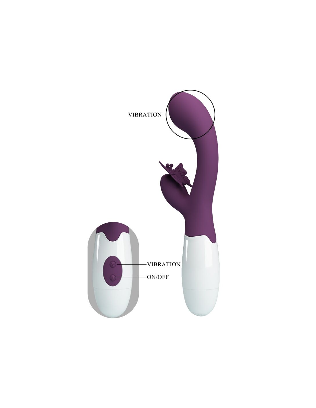 - Diseño Ergonómico: El cabezal de este vibrador masajea tu punto G, mientras que la mariposa estimula el clítoris para una experiencia simultánea que no dejará indiferente.