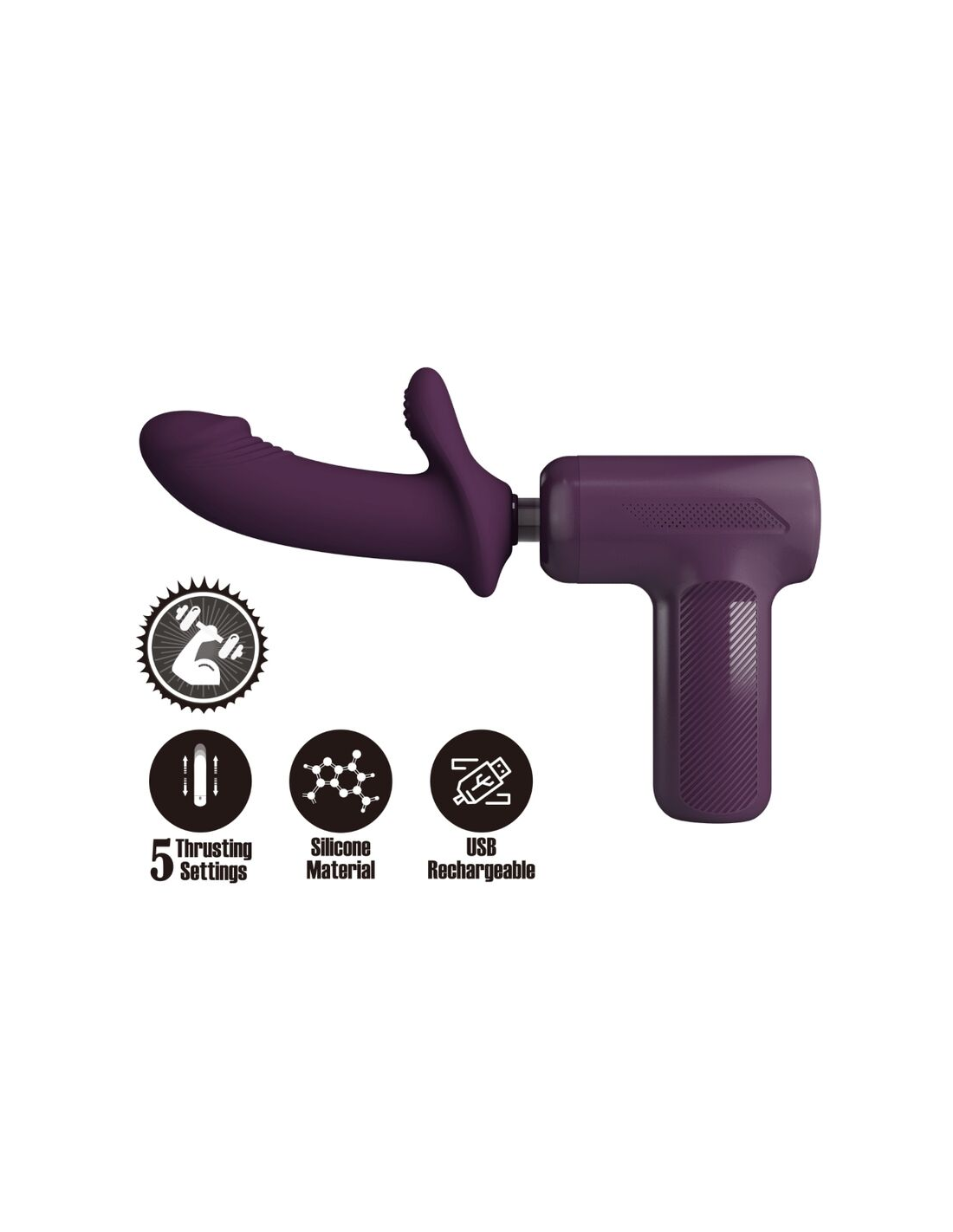 Esta pistola de masaje súper potente tiene 5 configuraciones de empuje y un cabezal de silicona reemplazable. Lo más importante es que el motor más potente dentro de la pistola de masaje te brindará la experiencia erótica más poderosa y una vibración increíble y una sensación de empuje. Si prefieres que tus juguetes tengan características poderosas, elige la última pistola de masaje súper poderosa de Pretty Love, resolverá y liberará todo tu estrés y te brindará un placer impresionante y grandioso.