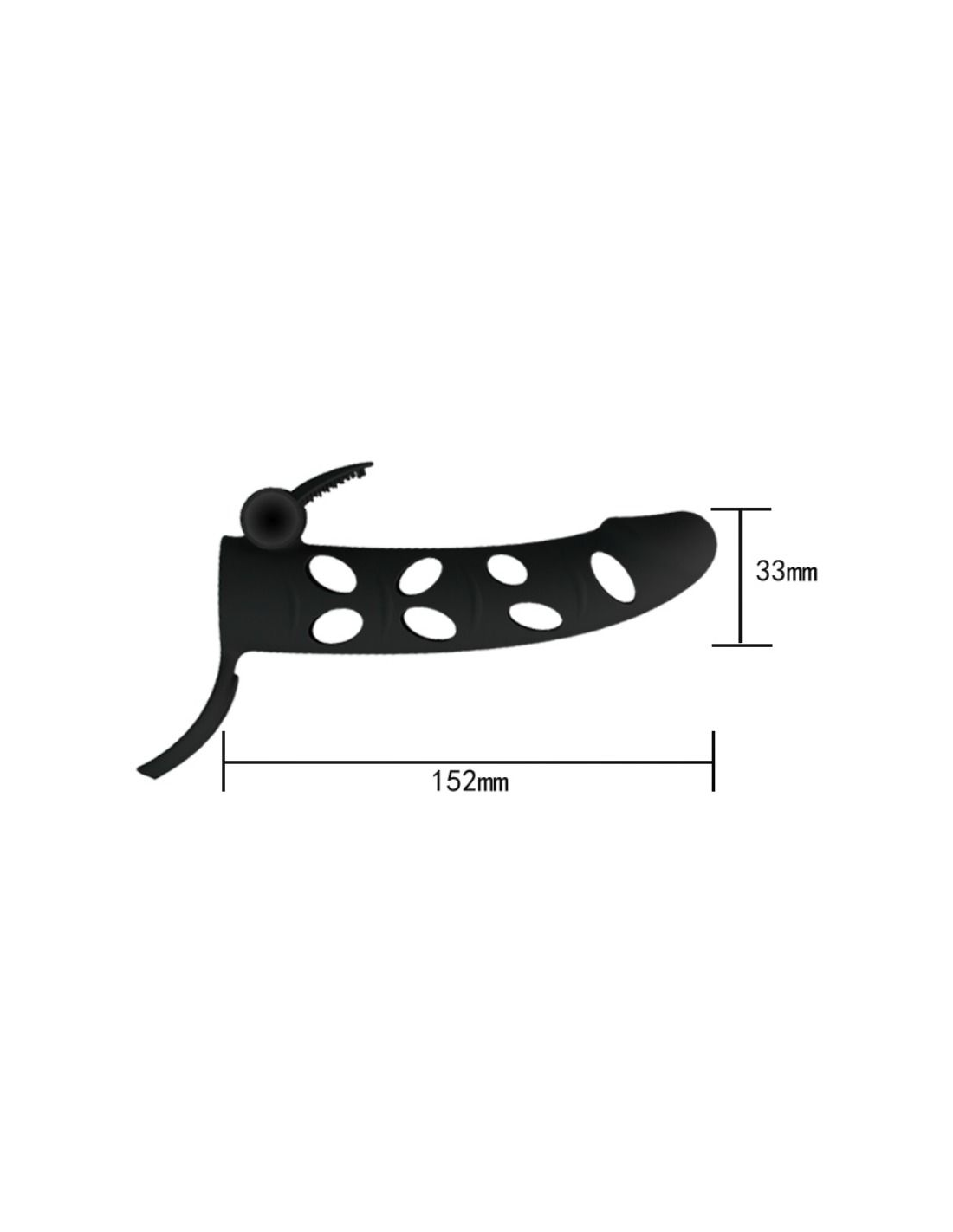 PRETTY LOVE MALEPorque el tamaño si importa, ahora Pretty Love trae esta funda de silicona para que puedas alcanzar hasta los 15.2 cm. Está hecho con silicona de primera calidad, resistente al agua para que puedas usarla en la ducha o spa, con anillo de sujeción en los testículos e incorpora una bala vibradora y texturas a la altura del clítoris con lo que aumentareis el placer en pareja. Además de ganar unos centímetros en longitud y grosor de más, es perfecto para personas con eyaculación precoz o disfunción erectil para poder seguir disfrutando.